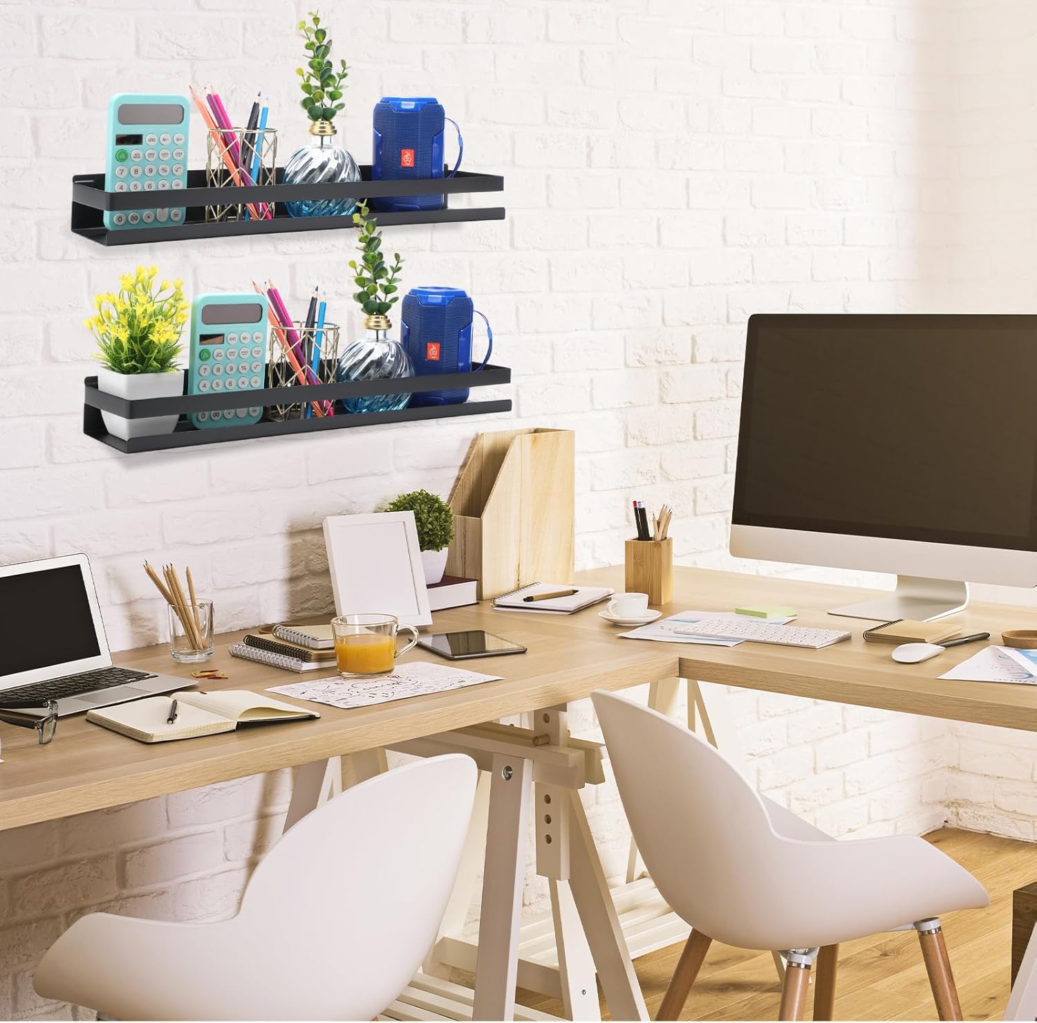 Lallisa 2 Pieces Stainless Steel Shelf Bathroom Shower Floating Shelves Wall Mounted Shower Caddy Basket Shelf Storage Organizer Shelves for Bathroom, Kitchen, Living Room(19.69 Inches/ 50 cm,Black)