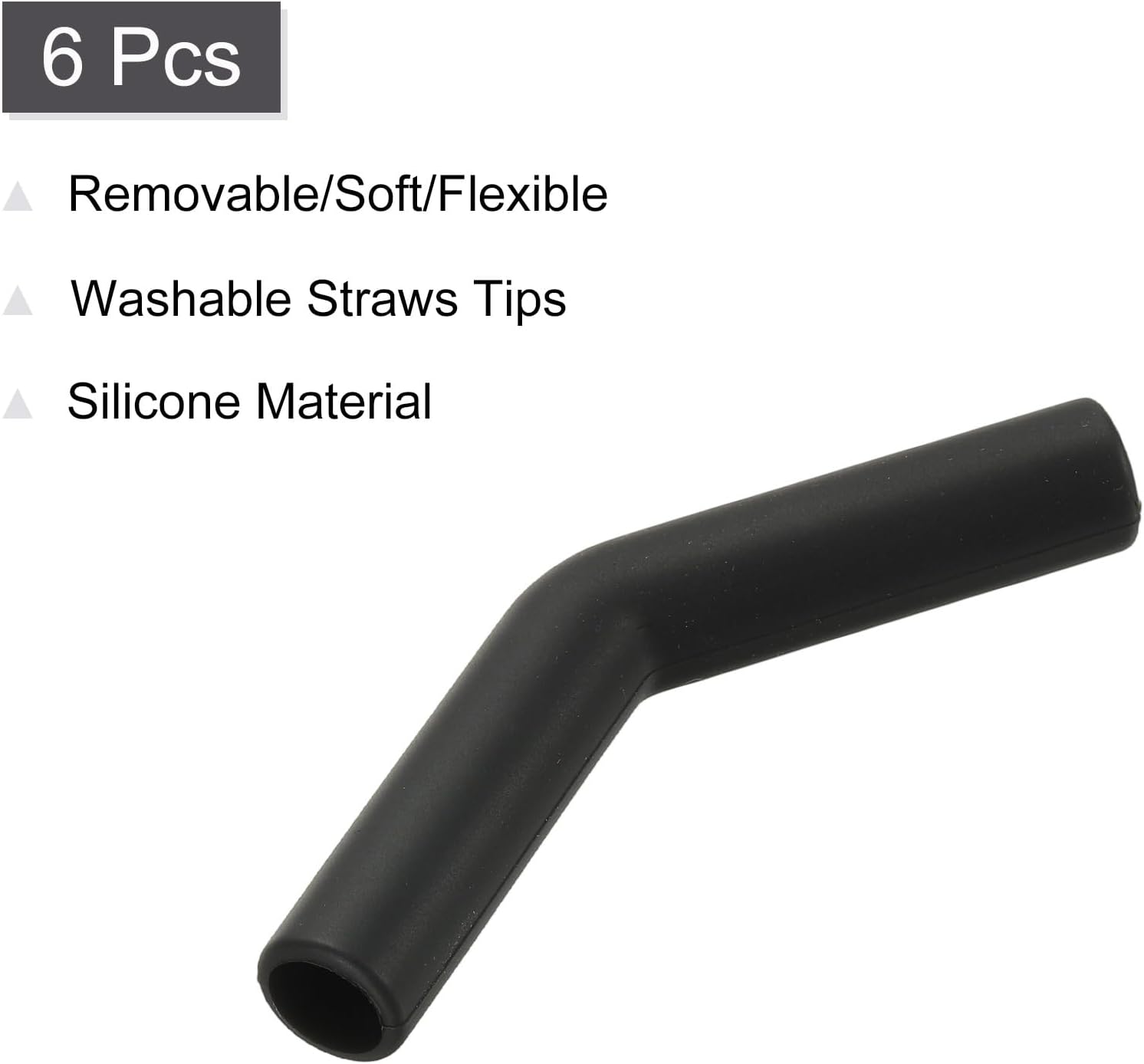 uxcell 6Pcs Silicone Straw Tips, Silicone Straw Elbows Tip, Soft Reusable Metal Straw Covers Fit for 10mm/0.39" OD Stainless Steel Straws, Black