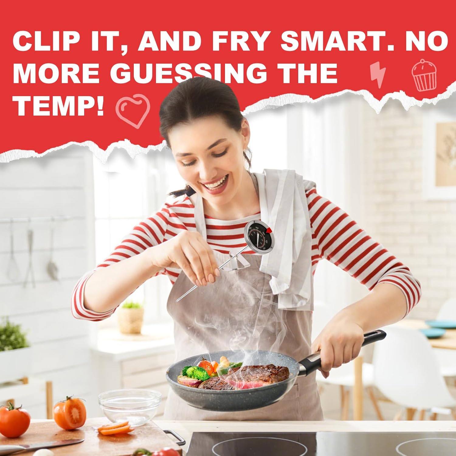 - 【Professional Precision】Detects critical sugar stages (thread 230°F - hard crack 310°F) and monitors frying oil up to 550°F. Dual-scale dial instantly converts Celsius for international recipes.
