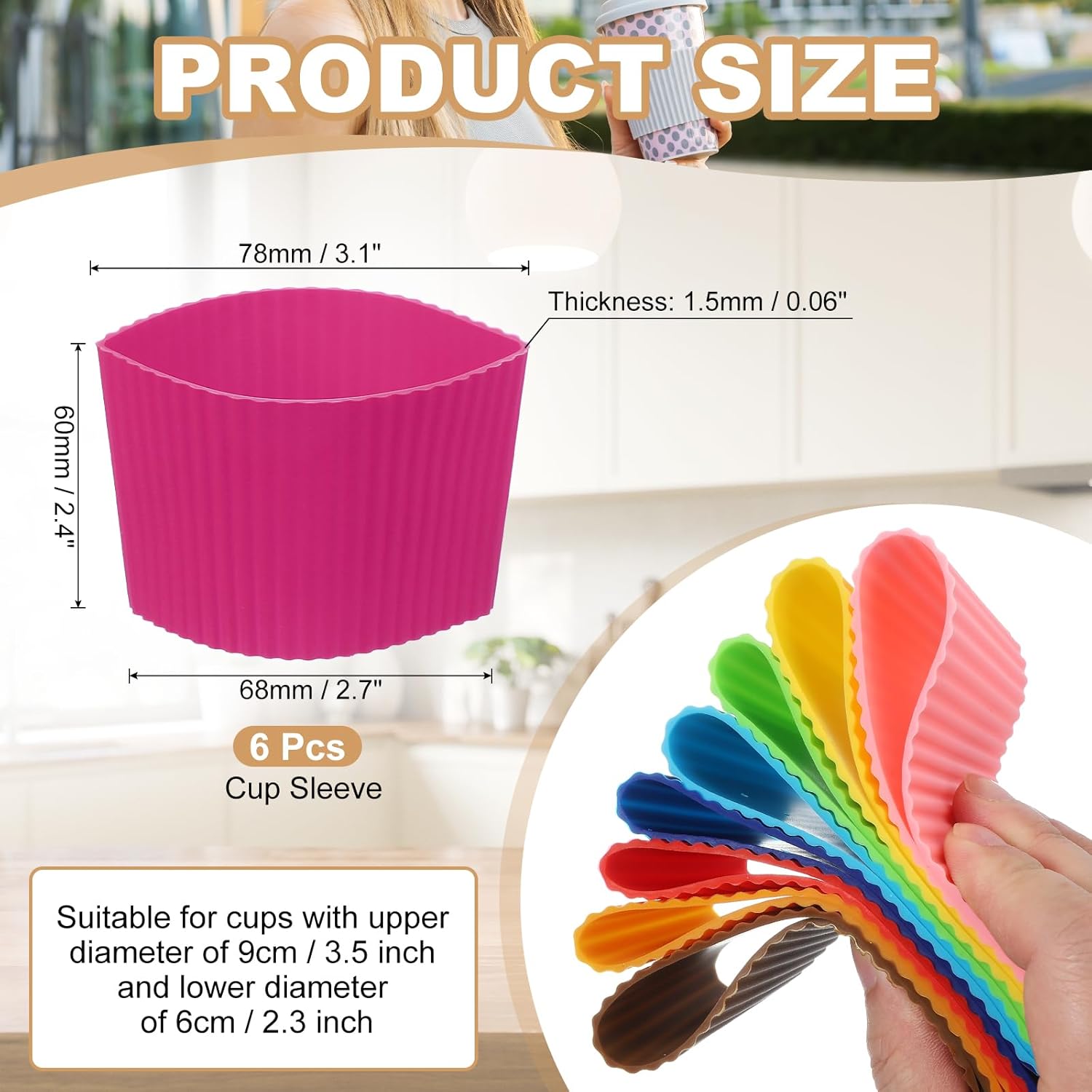 - Specification: Color: Rose Red; Material: Silicone; Style: Tapered Stripes; High: 60mm / 2.4 inch; Upper Diameter: 78mm / 3.1 inch; Lower Diameter: 68mm / 2.7 inch; Thickness: 1.5mm / 0.06 inch; Applicable Cup Upper Diameter: 9cm / 3.5 inch; Applicable Cup Lower Diameter: 6cm / 2.4 inch; Package Contents: 6 x Cup Sleeve