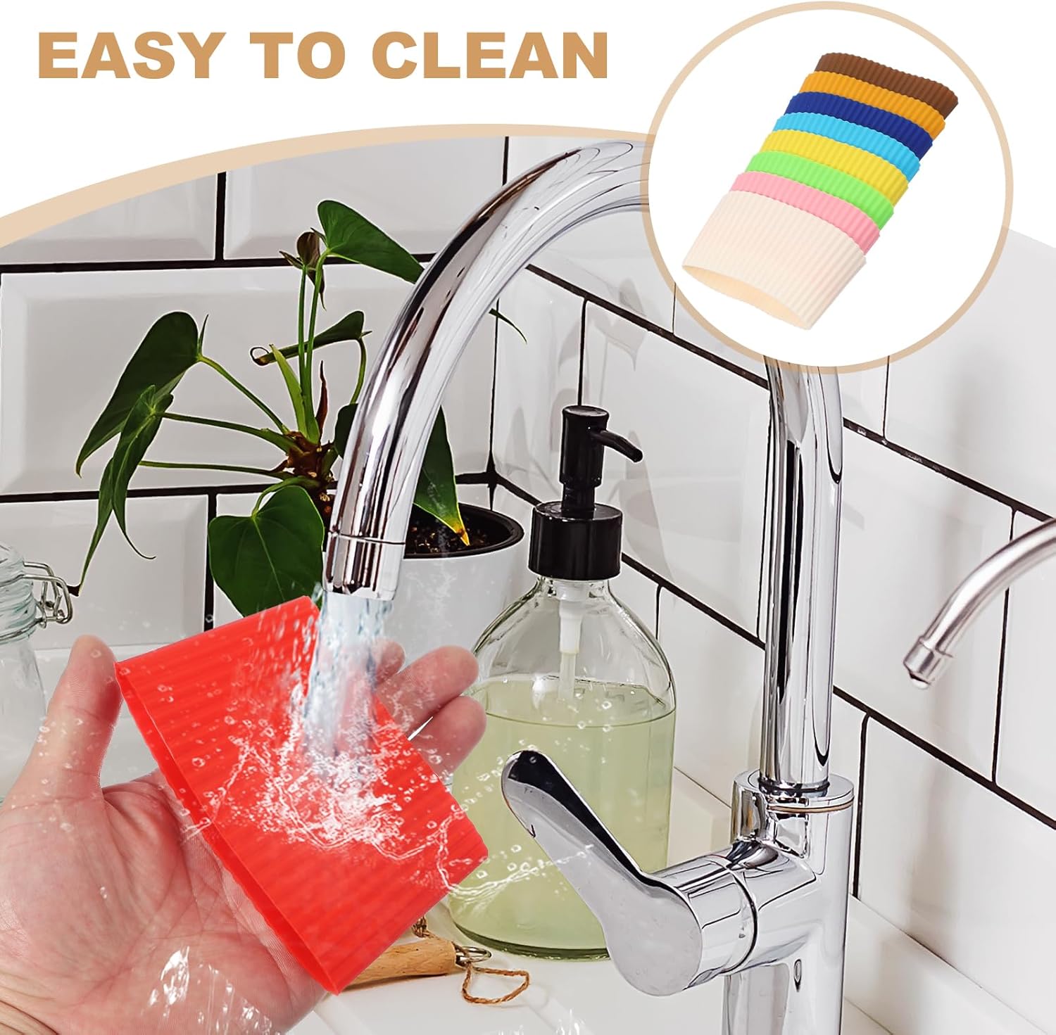 - SOFT & DURABLE MATERIAL: This silicone coffee cup cover is made of quality silicone material, which has excellent characteristics such as anti-slip, wear-resistant, water-resistant, and heat-resistant, ensuring that it will not be easily worn after long-term use; at the same time, it can be easily cleaned.