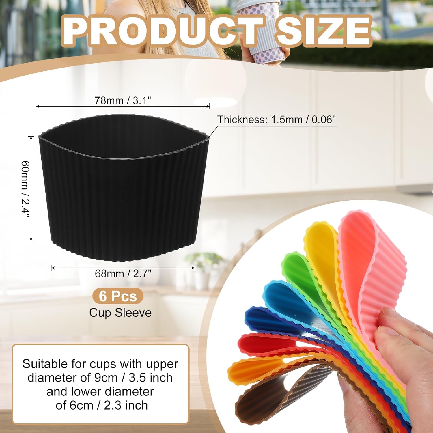 - Specification: Color: Black; Material: Silicone; Style: Tapered Stripes; High: 60mm / 2.4 inch; Upper Diameter: 78mm / 3.1 inch; Lower Diameter: 68mm / 2.7 inch; Thickness: 1.5mm / 0.06 inch; Applicable Cup Upper Diameter: 9cm / 3.5 inch; Applicable Cup Lower Diameter: 6cm / 2.4 inch; Package Contents: 6 x Cup Sleeve