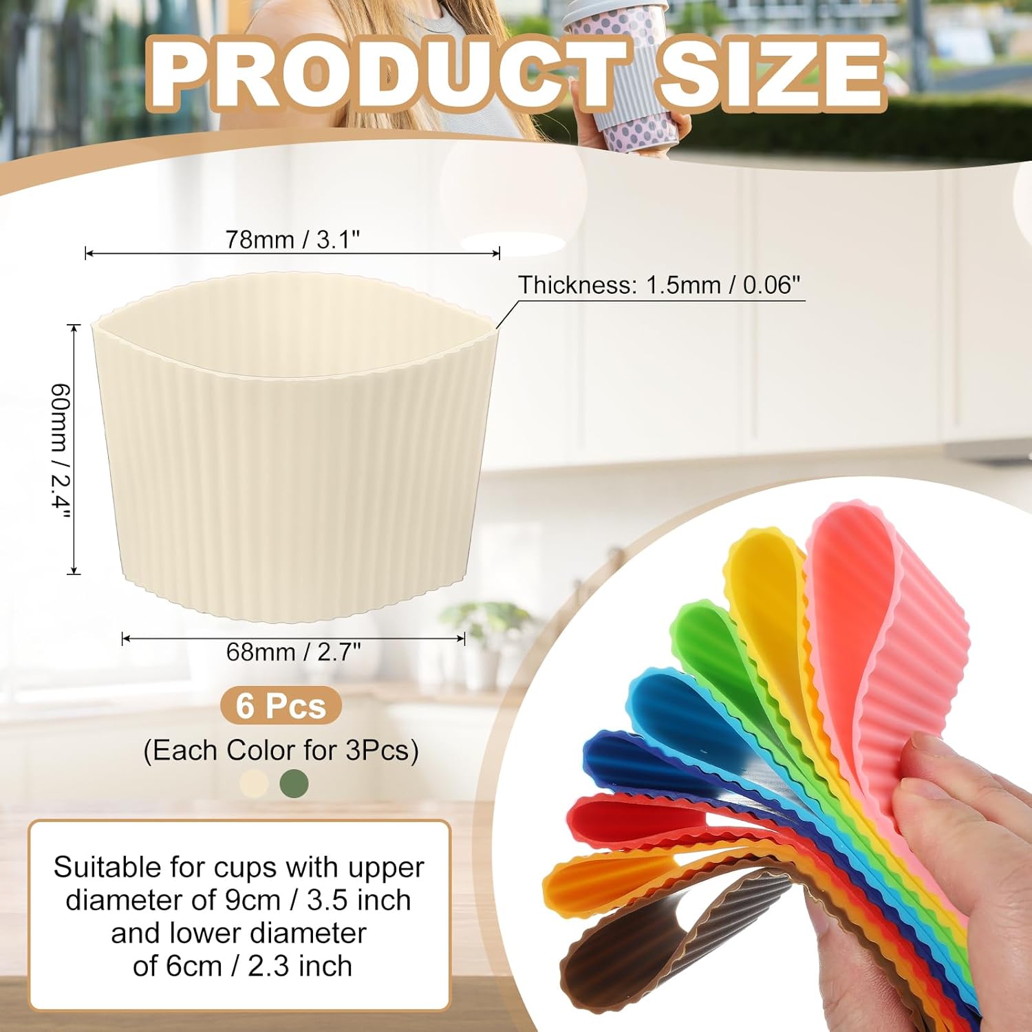 - Specification: Color: Green/Cream White; Material: Silicone; Style: Tapered Stripes; High: 60mm / 2.4 inch; Upper Diameter: 78mm / 3.1 inch; Lower Diameter: 68mm / 2.7 inch; Thickness: 1.5mm / 0.06 inch; Applicable Cup Upper Diameter: 9cm / 3.5 inch; Applicable Cup Lower Diameter: 6cm / 2.4 inch; Package Contents: 6 x Cup Sleeve