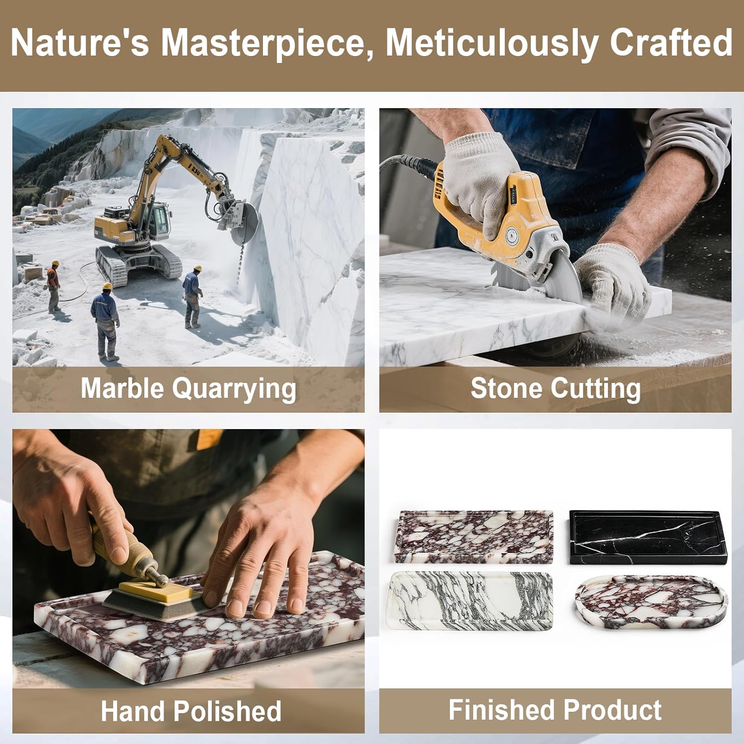 - Upgrade Package: We use shockproof pearl cotton to securely wrap each marble tray, providing full protection to prevent breakage or scratches during transit. Your marble bathroom tray will arrive in perfect condition and keep it looking pristine and elegant. This rectangular tray is carved from a single block of marble, not assembled or glued, allowing the tray to withstand daily use without easily tipping over