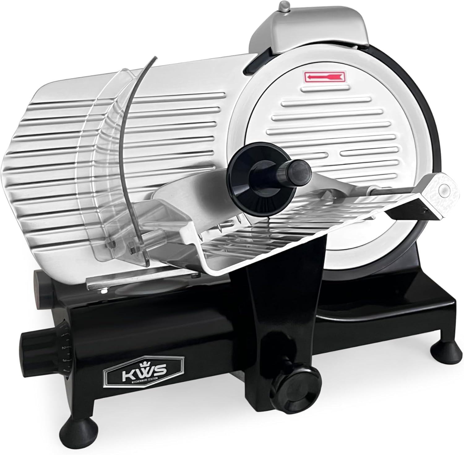- Razor-Sharp, Built to Last: 304 Stainless Steel Blade with Dual Sharpener. Tired of dull blades? The KWS slicer features a premium 304 stainless steel blade that’s resistant to rust and built for longevity. Plus, the built-in dual whetstone sharpener ensures your blade stays sharp, smooth, and ready to tackle any slicing job—keeping your workflow uninterrupted.