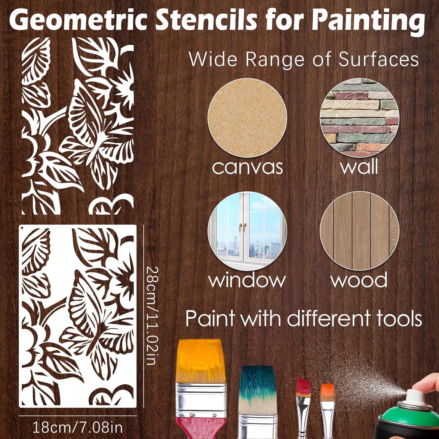 - 🎨 【6-Piece Geometric Stencil Set】: Package includes 8 reusable geometric painting templates 11 x 7 inches(18 x 28 cm). Perfect size for wall stenciling, floor patterns, furniture, canvas, and DIY home decor. Create stunning repeat patterns easily!