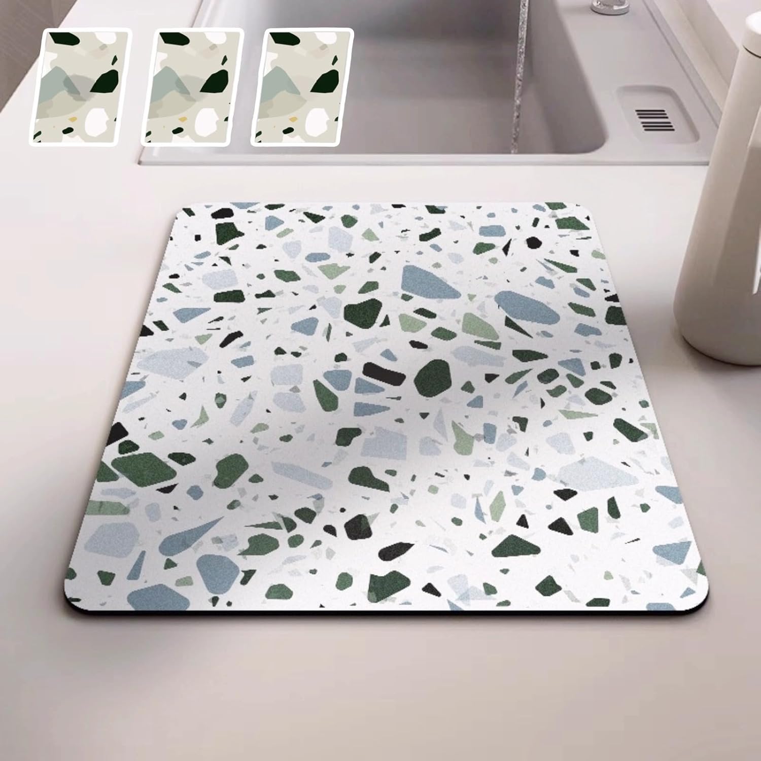 - 💧【Hiding Stains & Easy to clean】Special diatomite surfaces can hide coffee stains, milk stains, and any other dark messy stains well with this coffee bar mats for countertop. Keep your space dry, say goodbye to the traditional cloth and silicone dish drying mat full of stains. No need to wipe the sink countertops every time after using the kitchen sink mats.