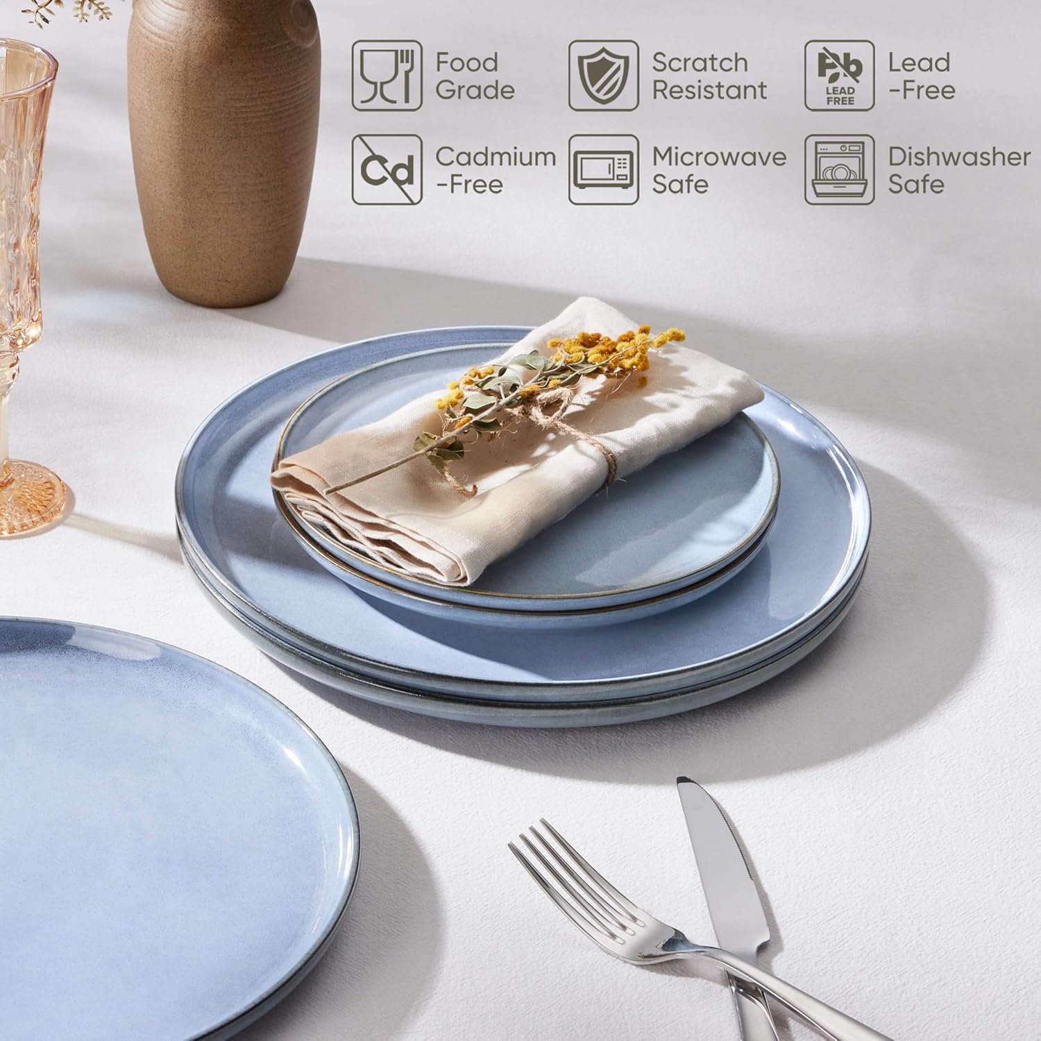 Herogo 6-Piece Stoneware Dinner Plates Set, 10.43" Ceramic Round Plate Set, Handmade Double Reactive Glaze Dinnerware Plates for Kitchen, Microwave, Oven and Dishwasher Safe, Haze Blue