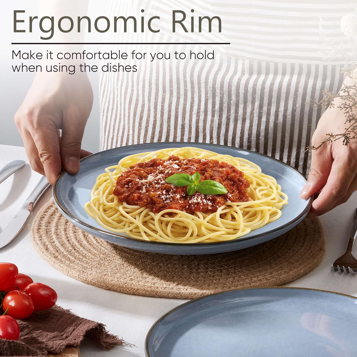 - Double reactive glaze craftsmanship, our plates are made with double-layer reaction glaze technology, which enriches the color of the stoneware and enhances the durability of the surface, the handmade edges complement the shiny glaze, making the bowl surface bright and appear uniquely appealing, also more wear-resistant, less likely to be scratched by tableware, and easy to clean