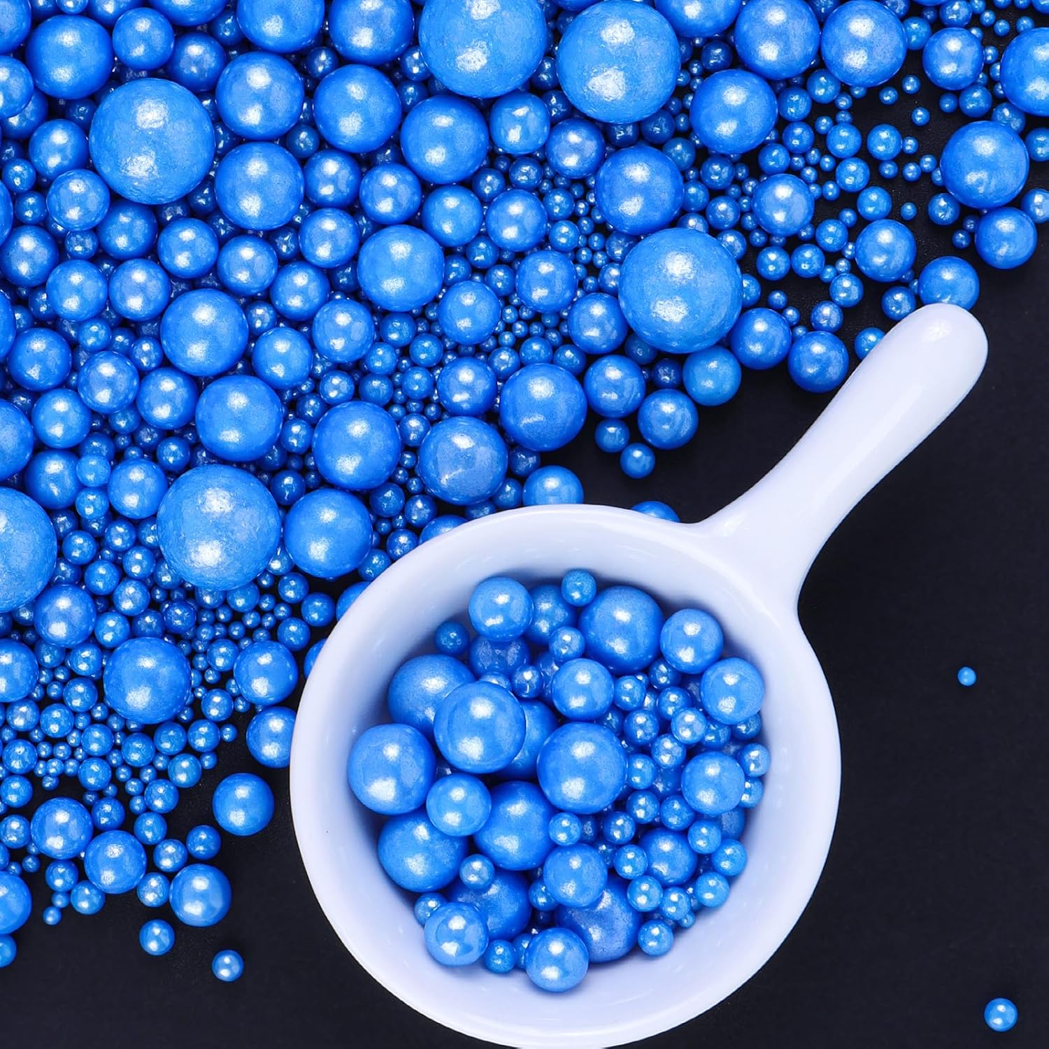 Royal Blue Sprinkles for Cake Decorating, 6 Sizes Mix 4.6 oz Edible Pearl Sugar Cupcake Ice Cream Topping for Wedding Parties Christmas Baking Supplies