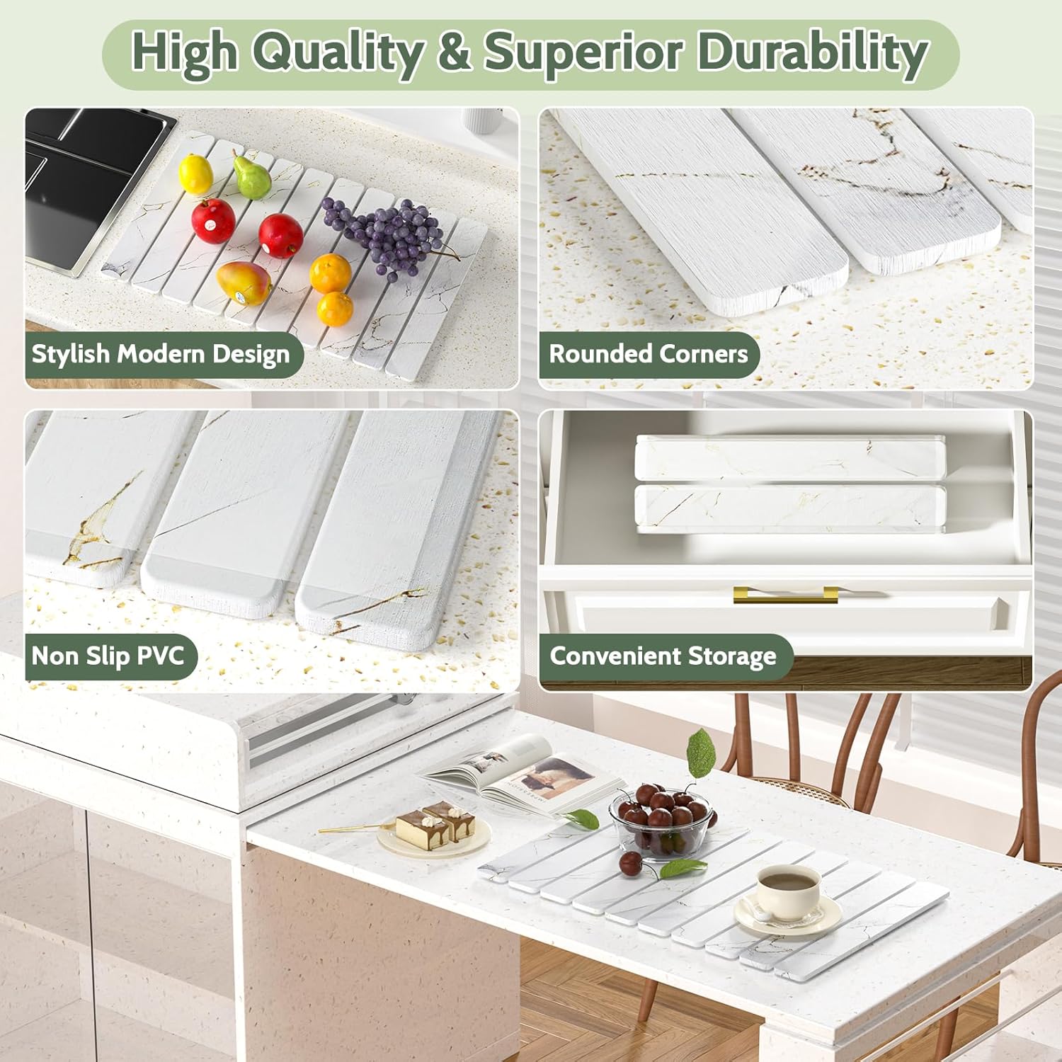 - Food-grade safe material, natural breathable diatomaceous earth, eliminates odors, slip-resistant, food-safe, quick-dry stone mat for the kitchen, food-friendly, modern design combining fashion and practicality, seamlessly integrates into your home kitchen decor, easy to clean. Dries quickly for convenient reuse. This stone dish drying mat for the kitchen counter makes daily use easier and more enjoyable. An excellent addition to any kitchen.