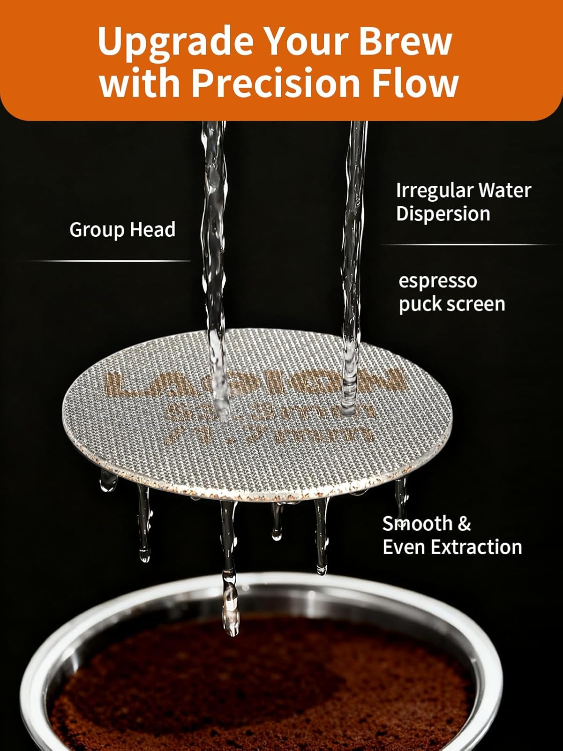 - 【Even Extraction for Better Espresso】Helps water spread evenly across the coffee puck to reduce channeling and support a balanced shot. Fits most 54mm portafilter baskets.