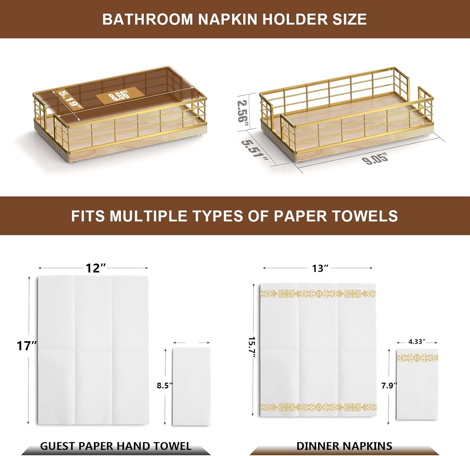 - Quite Versatile: This guest towel holder hold paper towels in the guest bathroom for hand drying; hold paper bath towels for your powder room, easy to retrieve towel when needed; It can also be used as a lunch napkin holder, looking very nice on the dining table