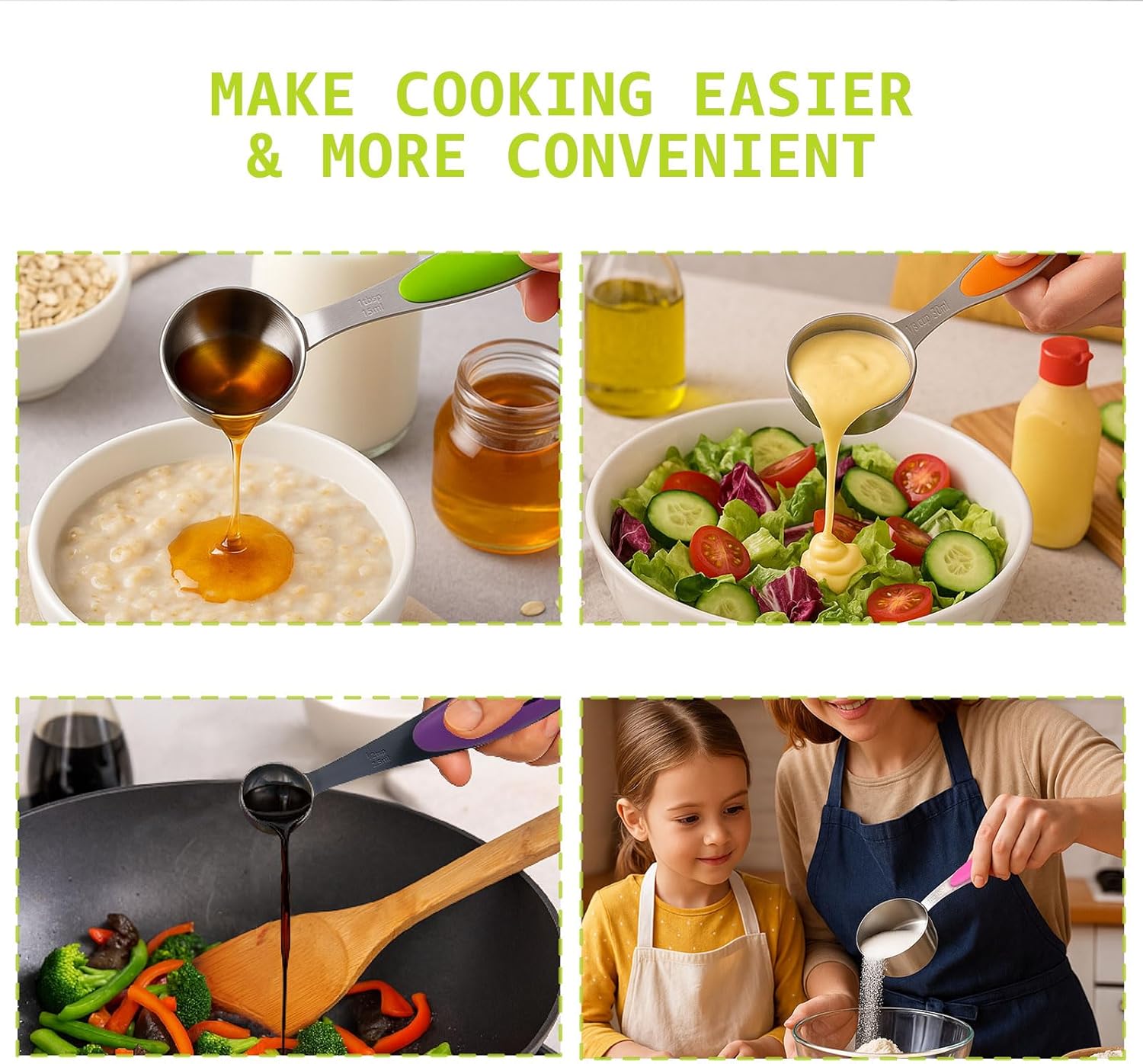 - Space-Saving Nesting Design: Each cup and spoon neatly nests together, saving drawer space and keeping your kitchen organized for quick access when baking or cooking