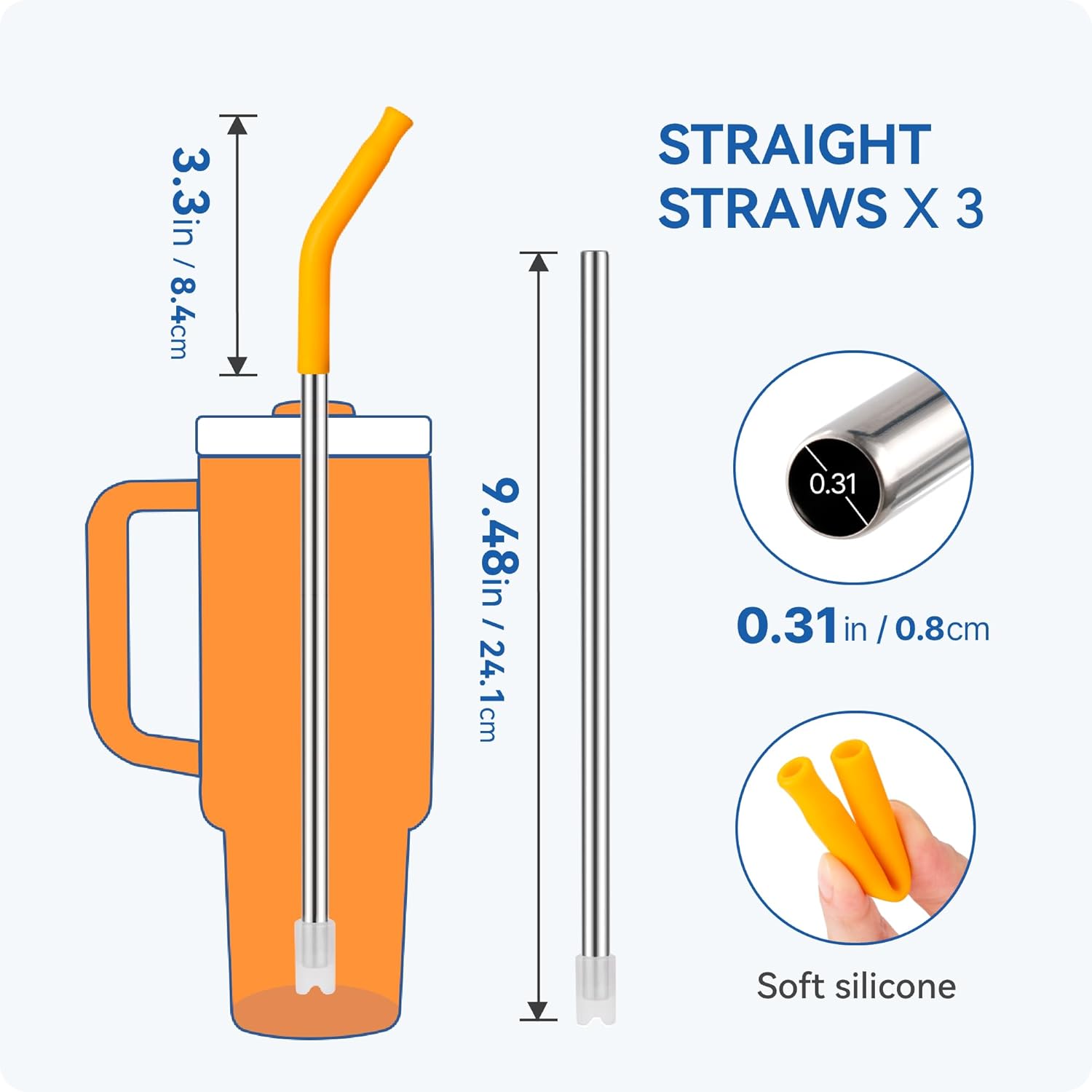 Reusable Metal Straws with Silicone Tip for Stanley 30oz,Stainless Steel Drinking Straws for 30oz Tumbler,3 Straight Tubes & 6 Tips& 1 Cleanr Brush (Goldenrod)