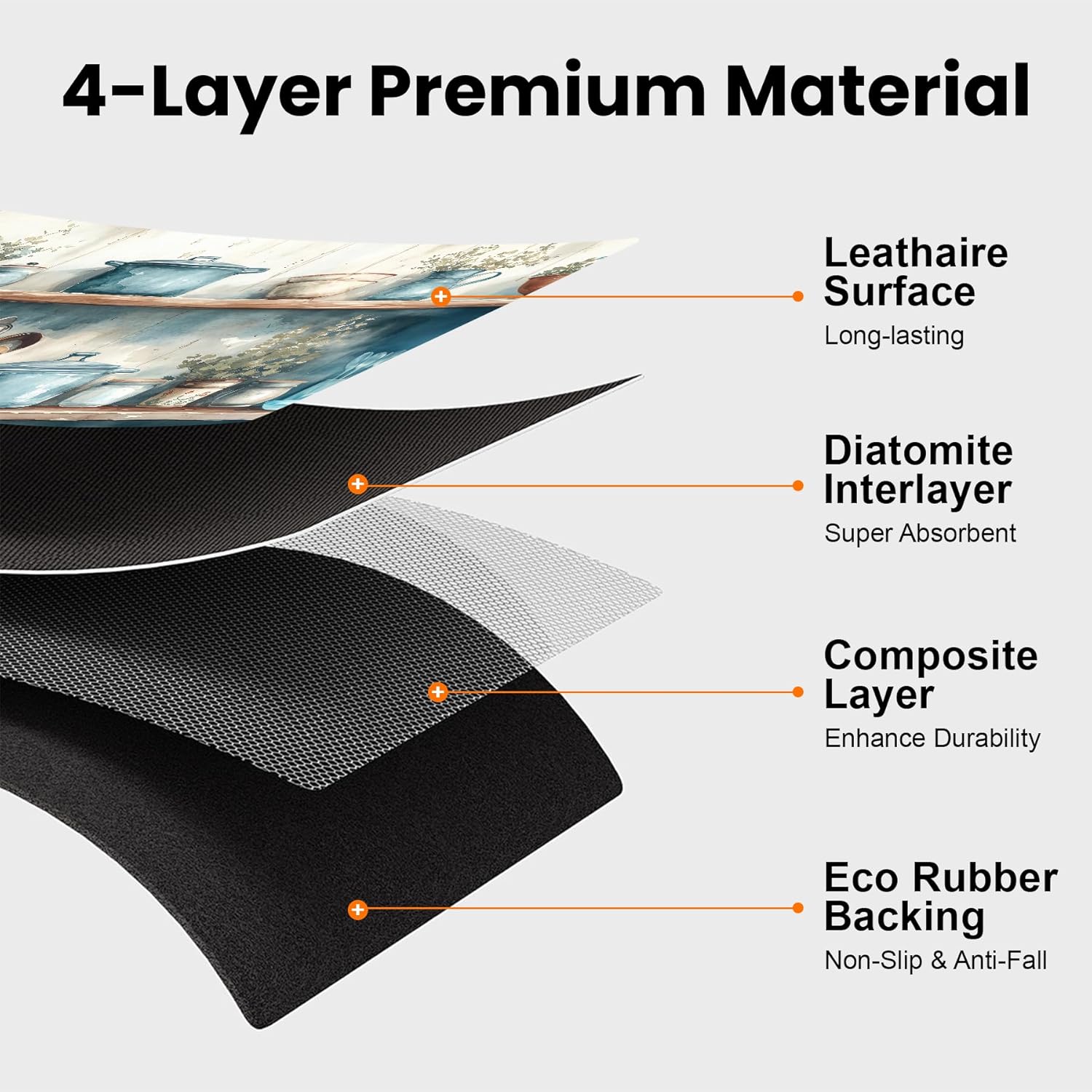 - Premium Coffee Mat - BVBOX 17"x 32" coffee bar mat is made of durable and tear-resistant materials, ensuring long-lasting durability. Its four-layer design features super water absorption, leak-proof and anti-slip performance, providing reliable protection for your countertop.