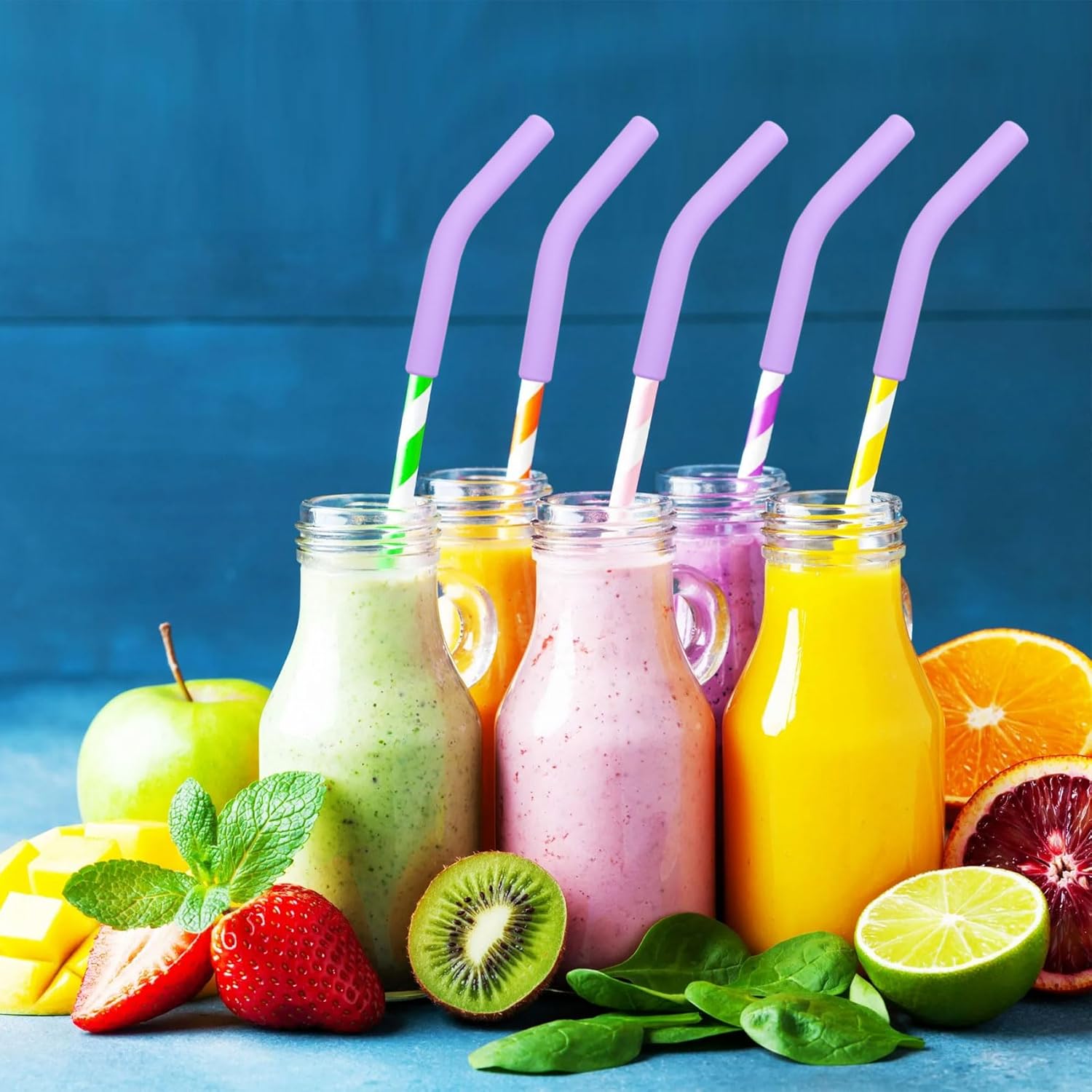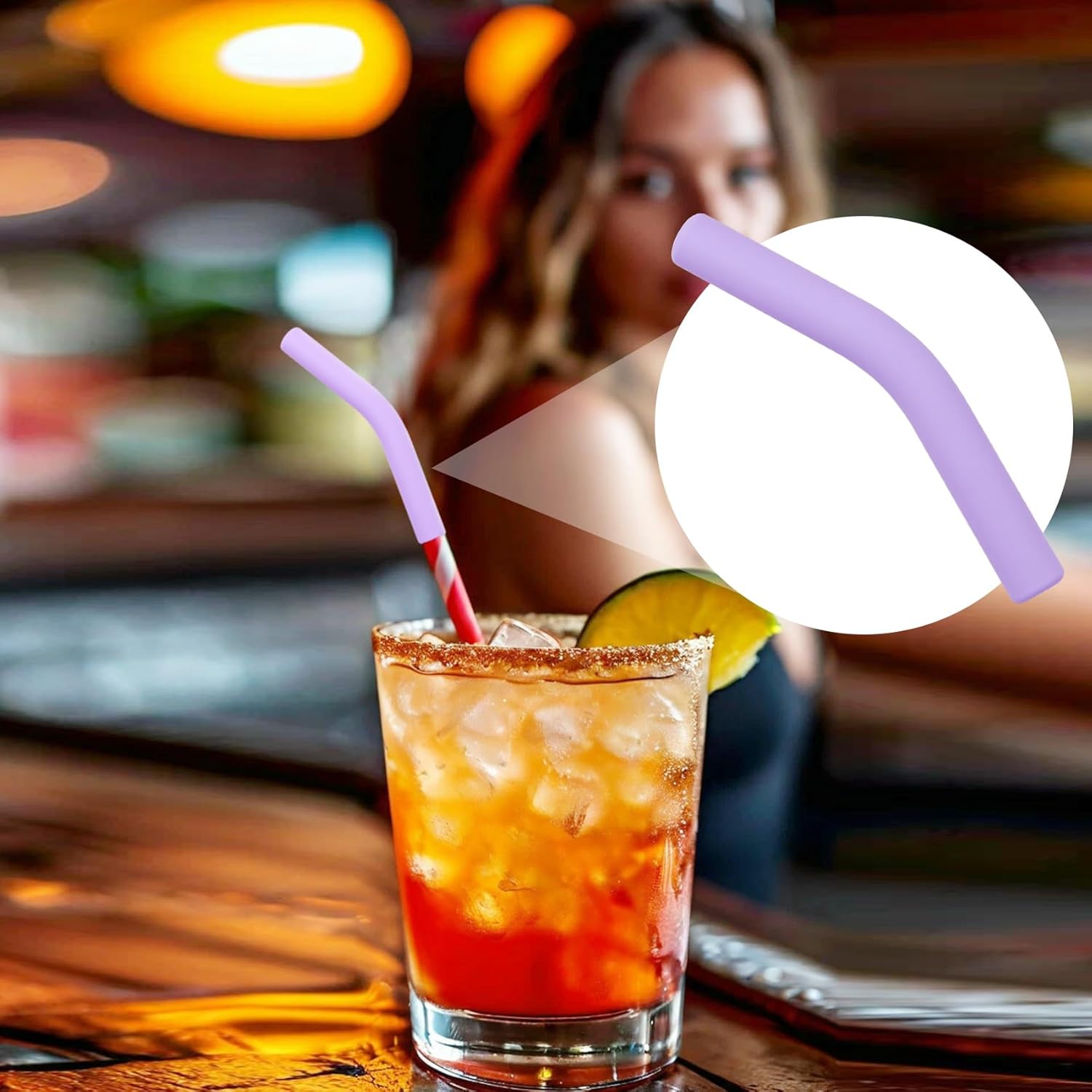 6pcs Food-Grade Silicone Metal Straw Tips, Reusable Flex Elbow Straws Cover Replacement Tips, Soft Straw Toppers Kits for 8 mm Stainless Steel Metal Straws - Light Purple