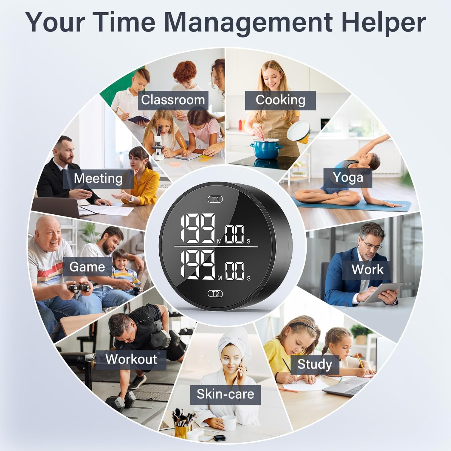 - Large Screen, Big Digits: This timer features a large screen and big digits display, making time easily visible at a glance. The high-definition and high-transparency glass screen ensures users can easily and clearly read the numbers.