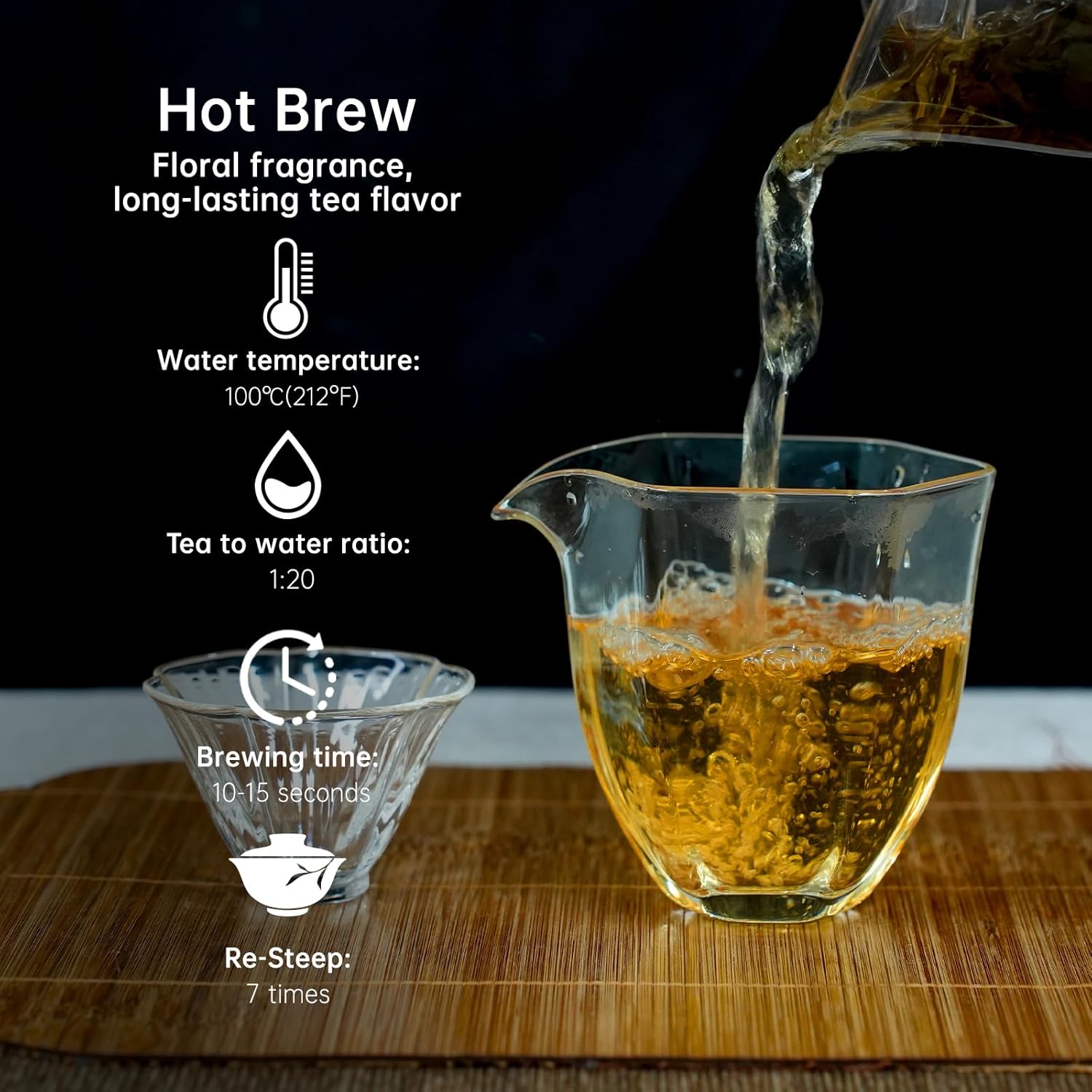 - Hot and Cold Brewing: The high temperature of hot tea stimulates the oolong tea polyphenols, resulting in a mellow and complex tea. Cold brewing fully releases the sweet osmanthus and the refreshing oolong flavor, leaving no bitterness and a smooth, sweet taste.