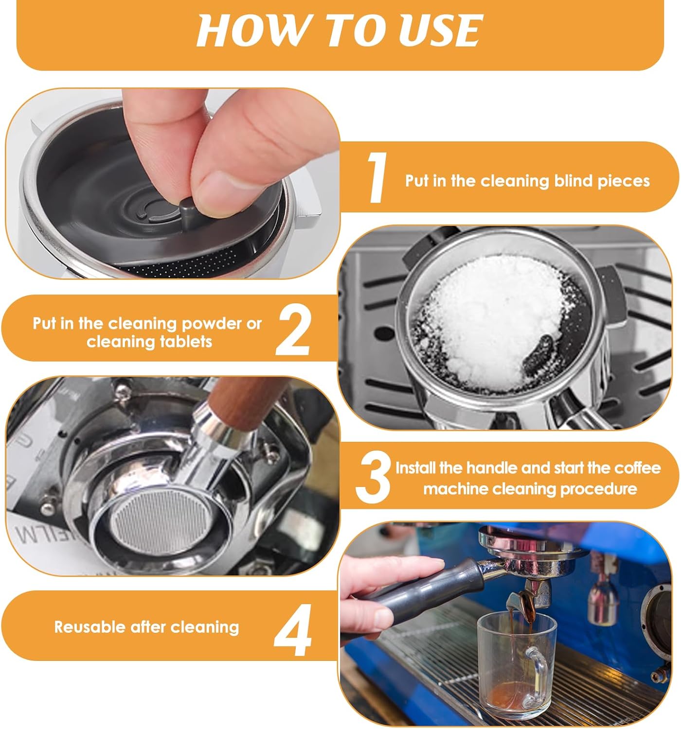 - High Quality Materials: This espresso machine cleaning disc is made from premium silicone. High temperature and pressure resistance, washable, reusable, can be used together with cleaning tablets to clean coffee stains effectively