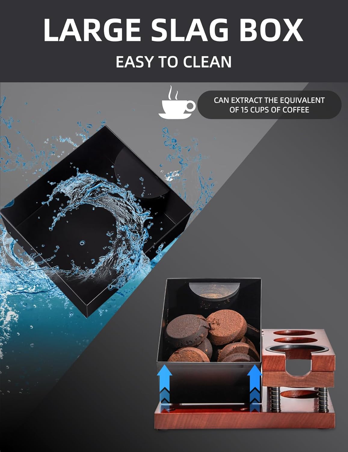- Barista's Universal : That espresso tamper spring bracket slim 51mm or chunky 58mm portafilters like they're made for it. Skip the espresso knock box measuring tape anxiety before morning meetings! Slides flush under espresso machines with zero overhang, freeing precious real estate for your avocado loanword spread.