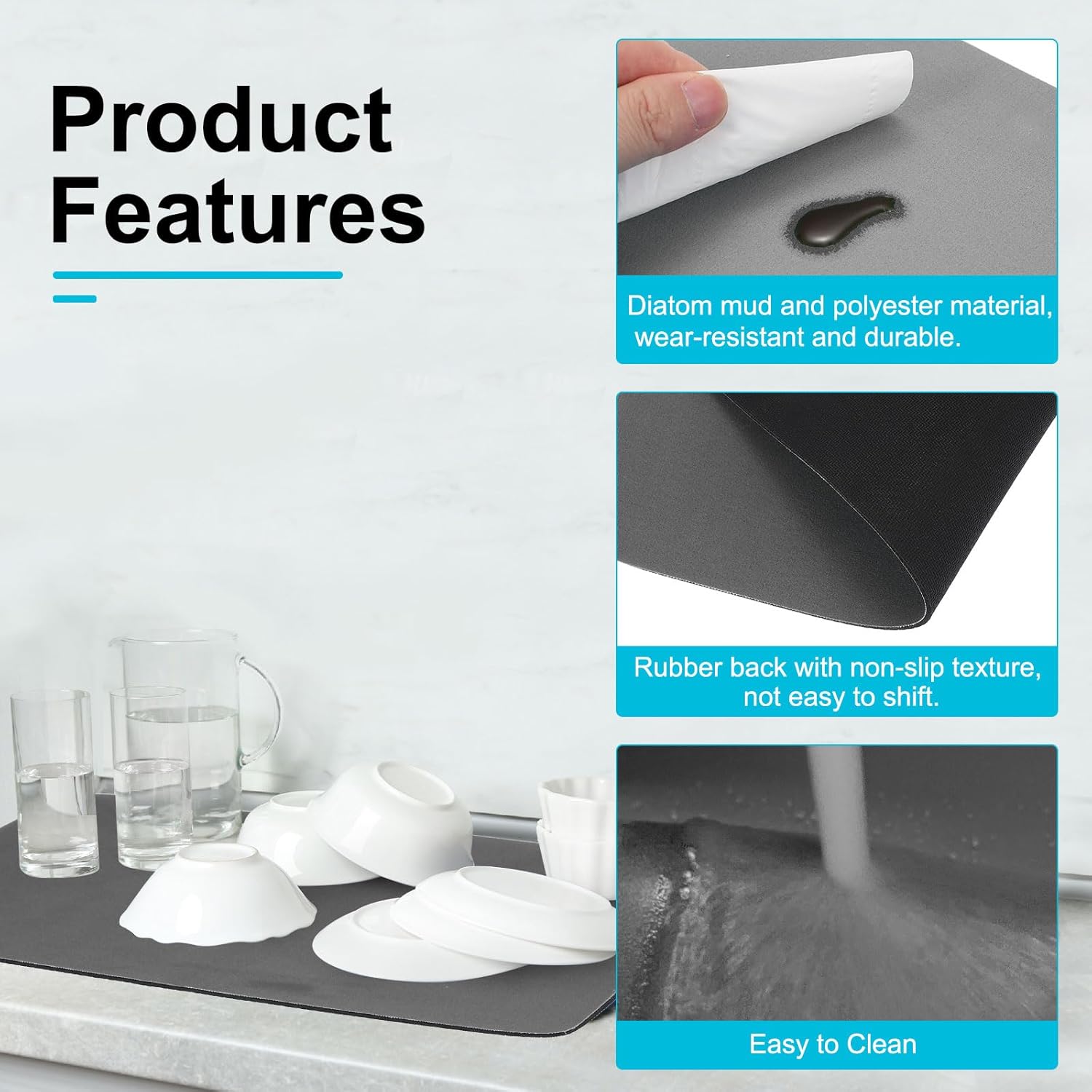 - Durable Material: The large silicone mat is made of diatom mud, which is wear-resistant, durable, and not easily damaged. The bottom is made of rubber material, and the anti-slip texture design allows it to firmly adhere to the desktop and makes it not easy to slide.