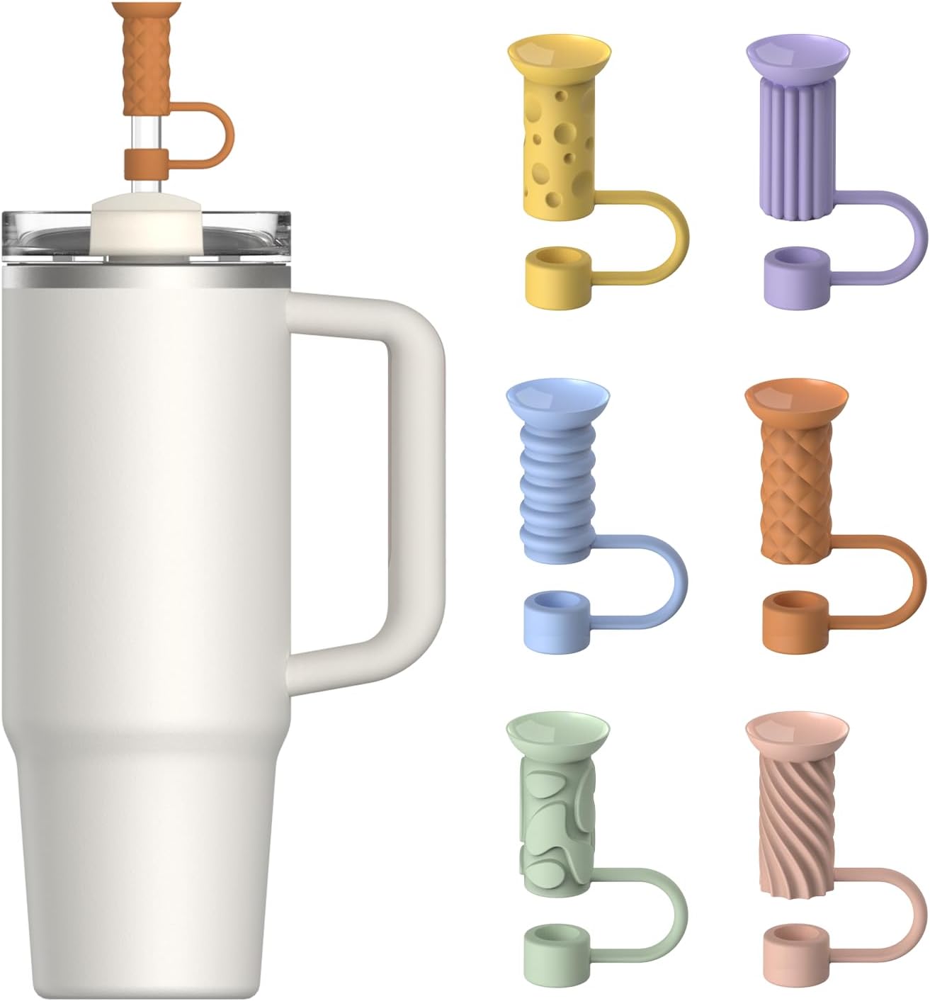 YOTIME Silicone Straw Covers Cap, 6 Pcs Reusable 0.39in/10mm Suction Cup Straw Toppers for Stanley Cup 40 30 oz, Multicolor
