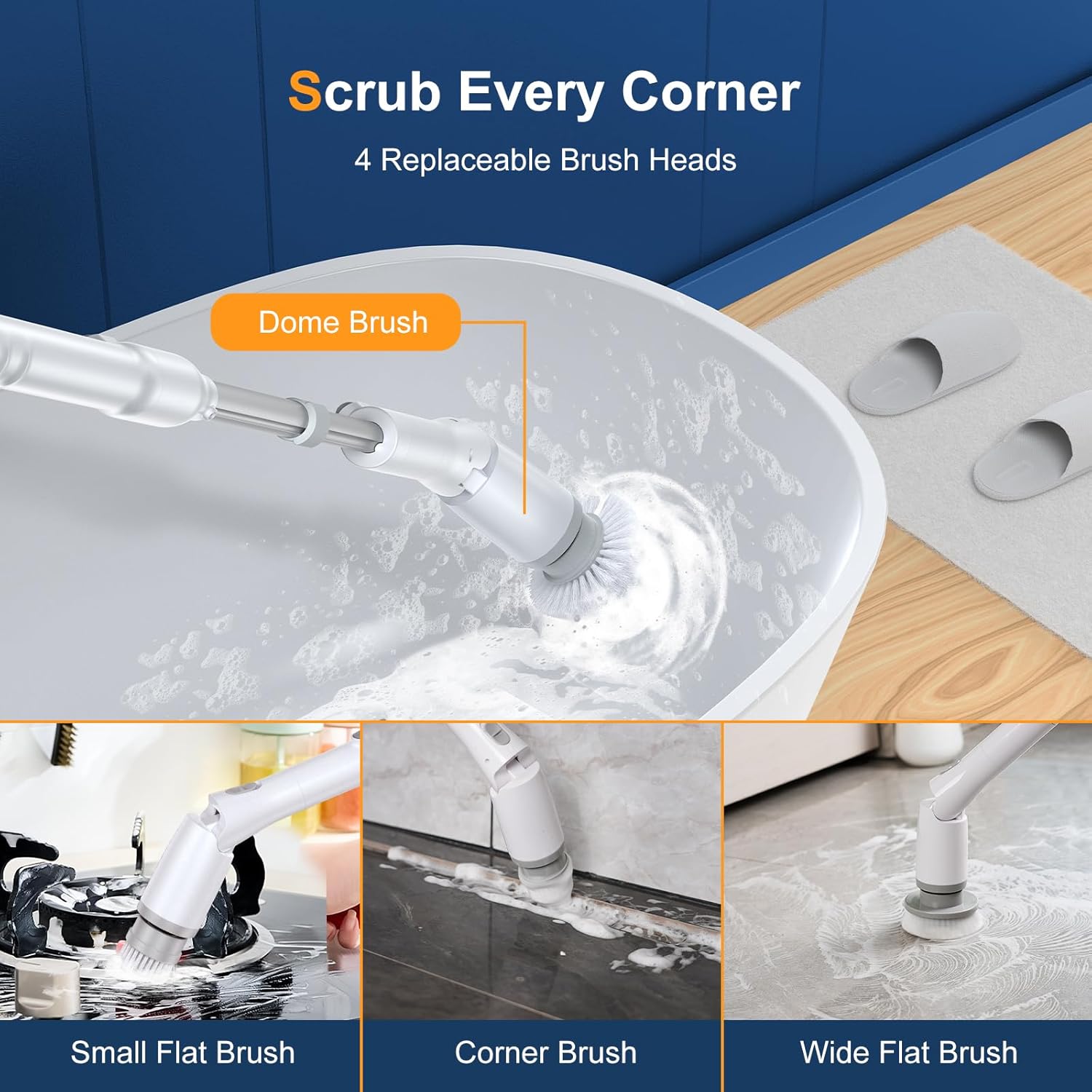 - Complete Cleaning Set: Enhance your cleaning regimen with the LABIGO Electric Shower Scrubber Complete Cleaning Set, featuring interchangeable brush heads and versatile attachments to keep your home spotless from top to bottom