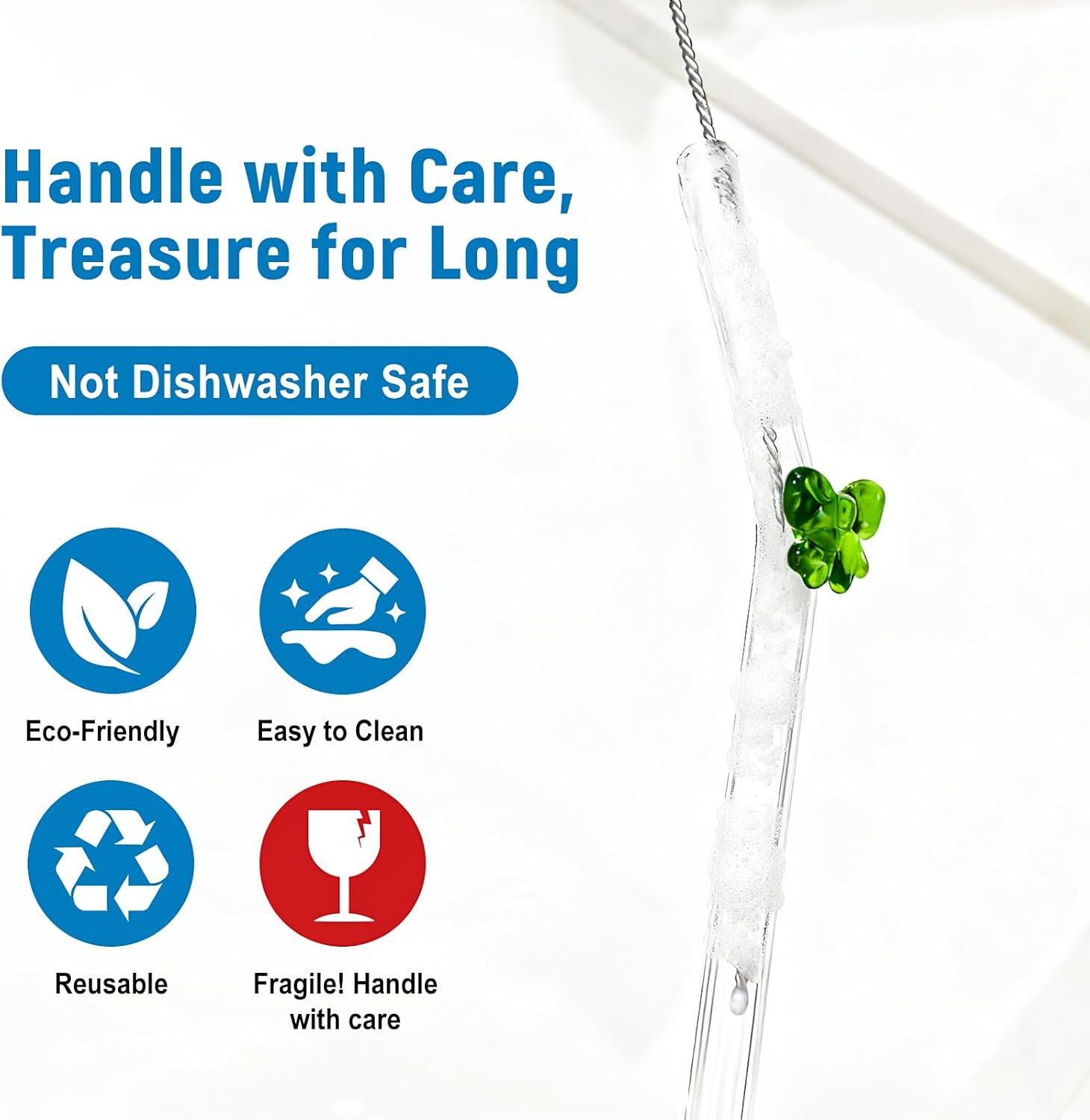 - ✨ Care Instructions – Keep Them Beautiful! Gently hand-wash with the included brushes — not dishwasher safe. Handle with care to preserve the delicate glass bows and ensure your clear glass straws stay sparkling and stunning for years.