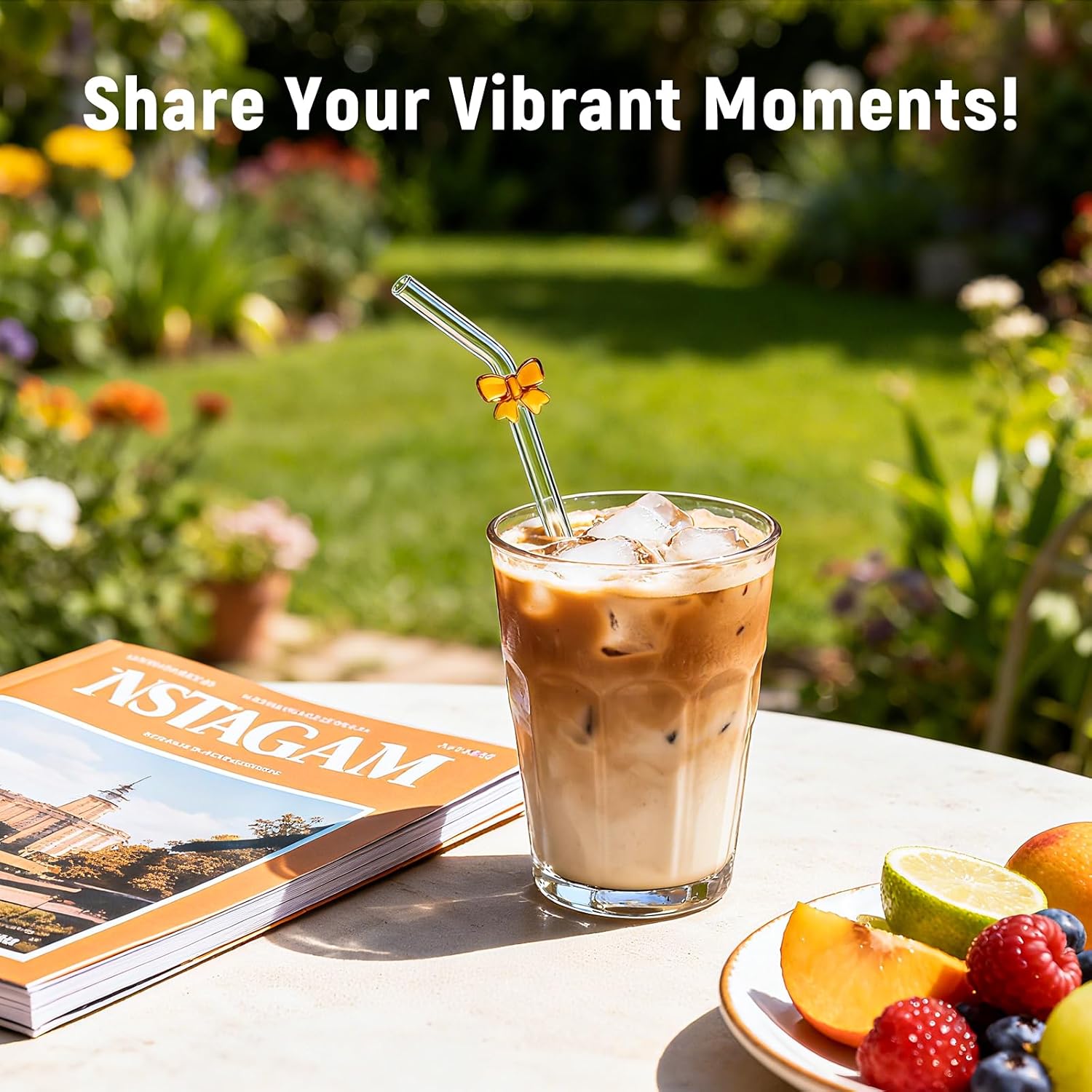- 🔥Eco-Friendly & Reusable Glass Straws – Safe, Stylish & Sustainable: Crafted from non-toxic, BPA-free borosilicate glass, these cute glass straws with charms are not only safe and durable but also fully reusable — making them a planet-friendly choice for all your favorite beverages. Whether you're sipping hot coffee or indulging in refreshing iced drinks like iced coffee straws, these reusable straws with case offer both style and function.