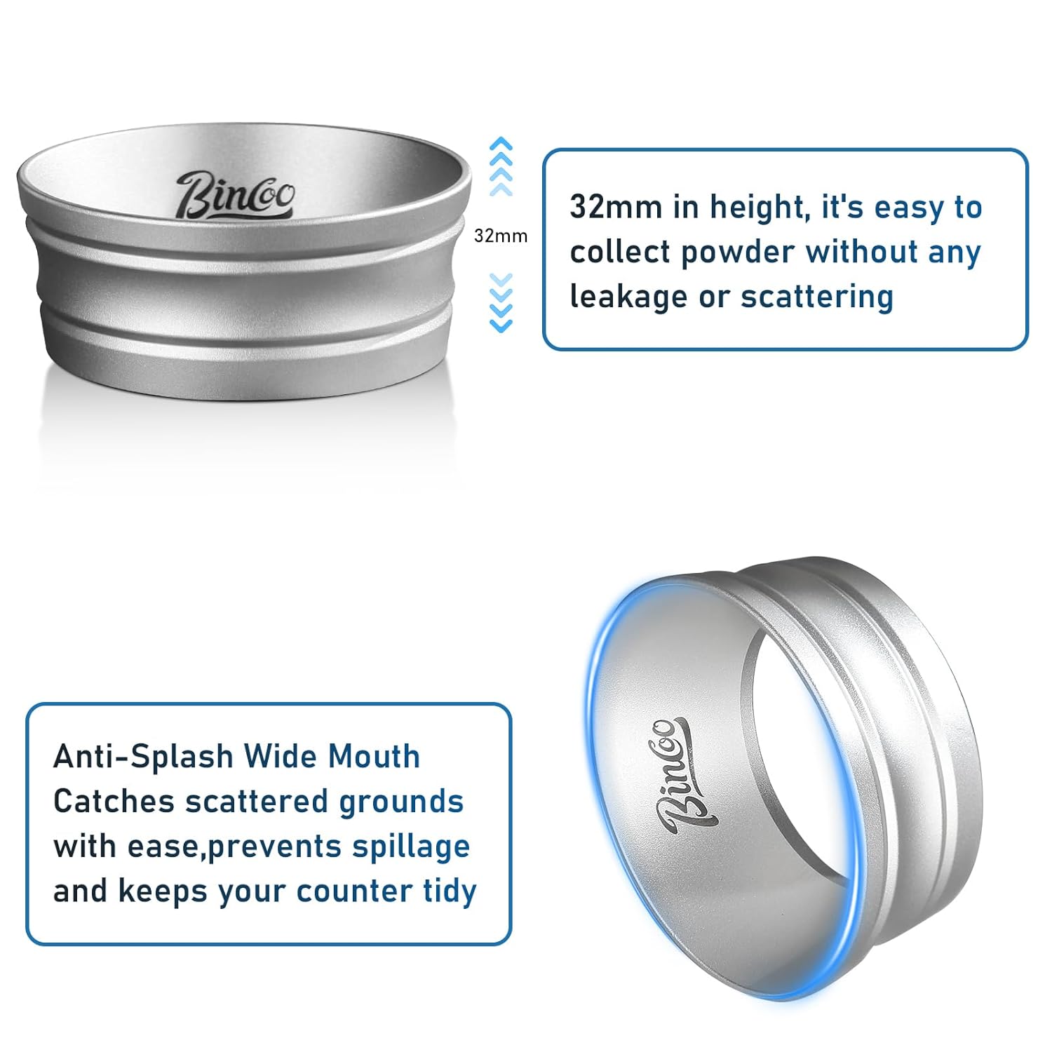 Bincoo Espresso Dosing Funnel 58mm,More Tall Magnetic Aluminum Alloy Portafilter Funnel Ring for Zero Mess Portafilter, Anti-Splash Wide Mouth Coffee Grounds Dosing Tool for Espresso Machine(Silver)