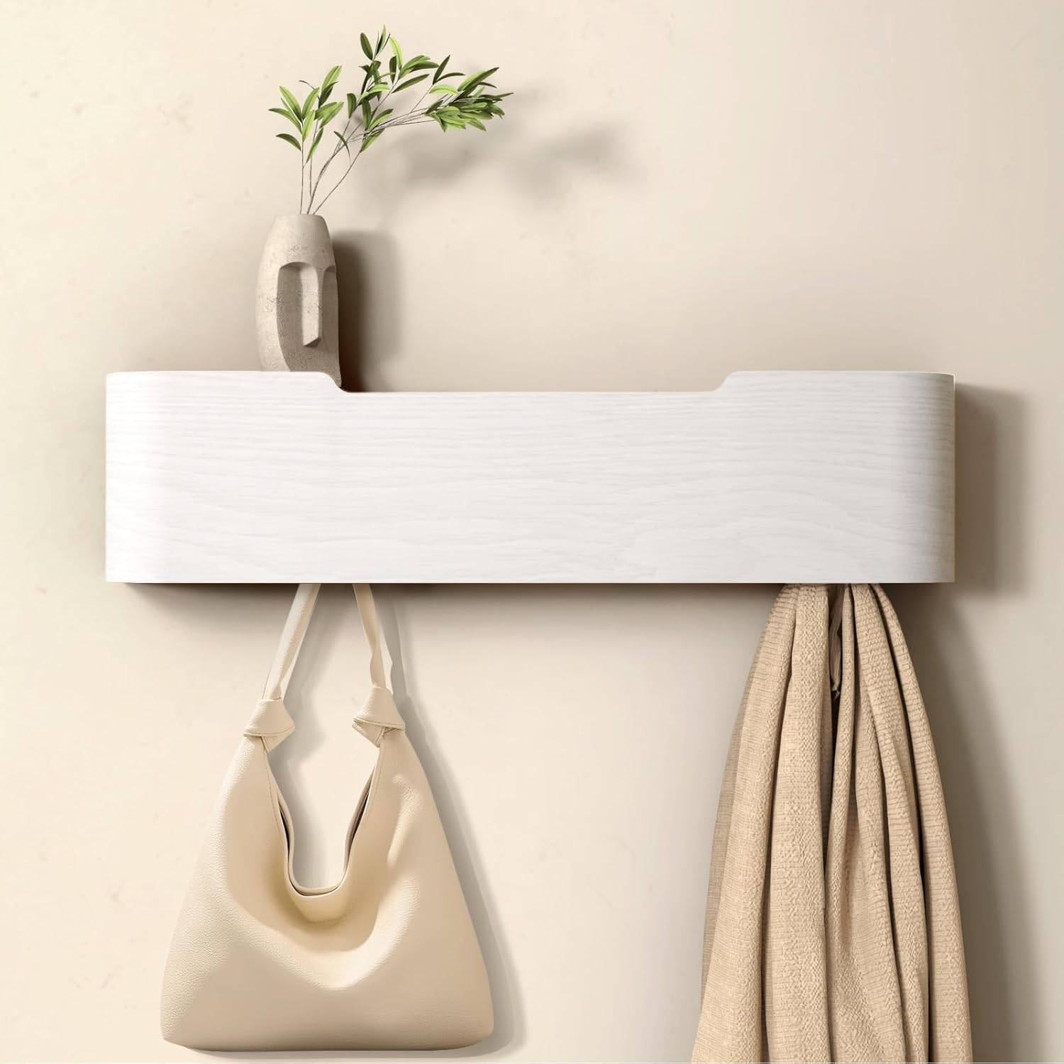 • 【Entryway Wall Storage】: This entryway organizer holds scarves, hats, keys, and other essentials for heading out, preventing clutter from haphazardly piled items. The top shelf accommodates sunglasses, watches, and other small accessories, offering dual storage to streamline your comings and goings