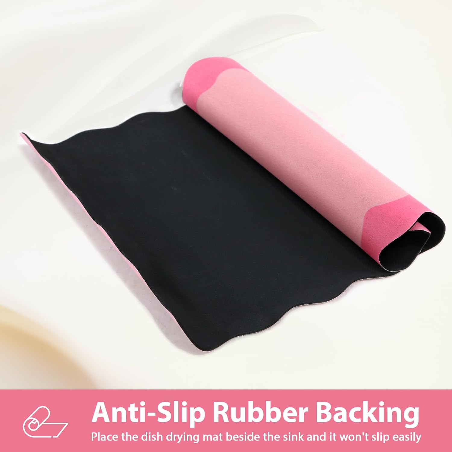- Scalloped & Cute Design: Pleae clean it according to our instruction in picture before using our scalloped dish drying mat. Please refer to the size chart to see the size. Our scalloped cute dish drying mat gives the best expression to the aesthetics. It can not only be used as a coffee mat, but also as a door mat, placemat, mouse pad, pet mat and even can be as a decoration for the kitchen and home, adding bright colors to your home