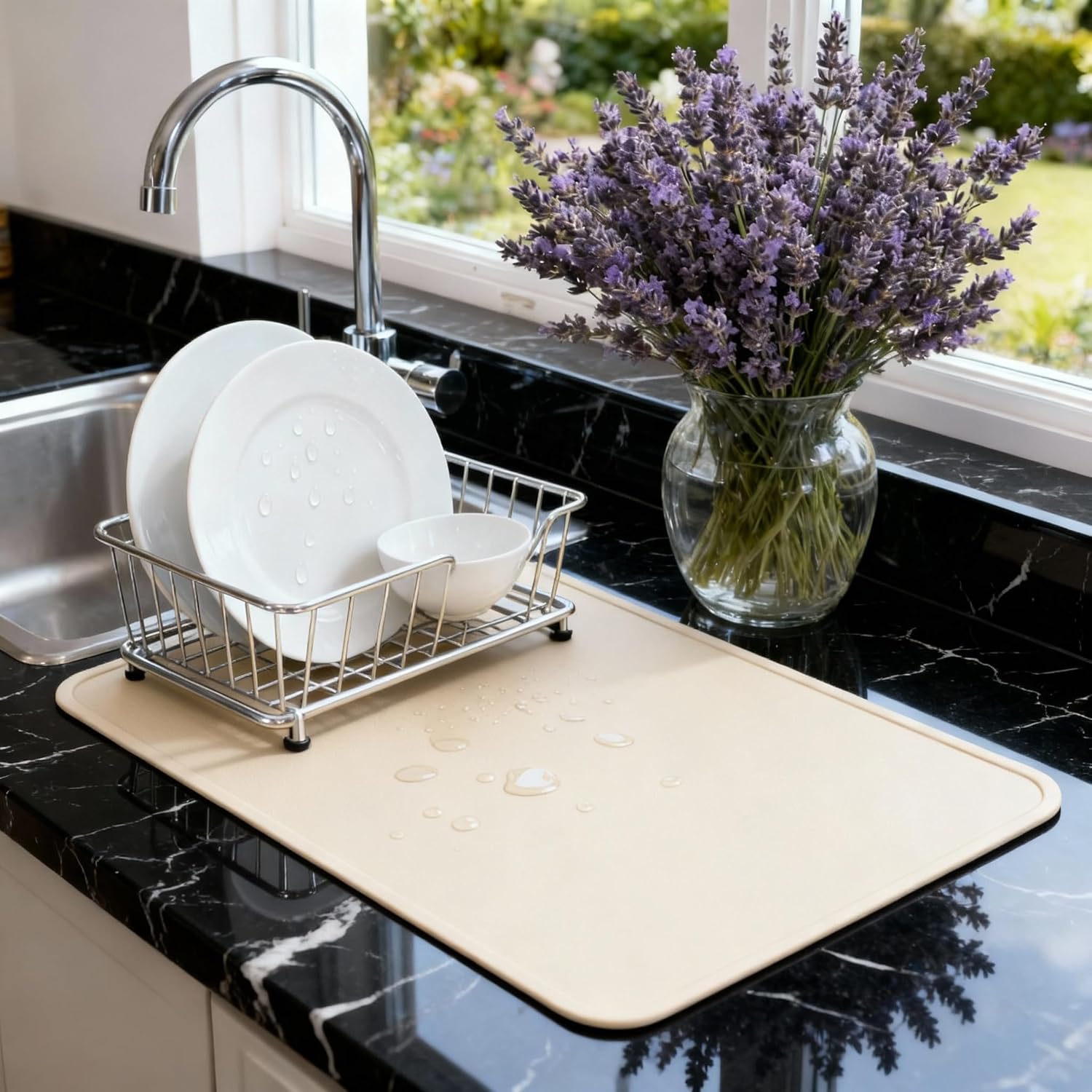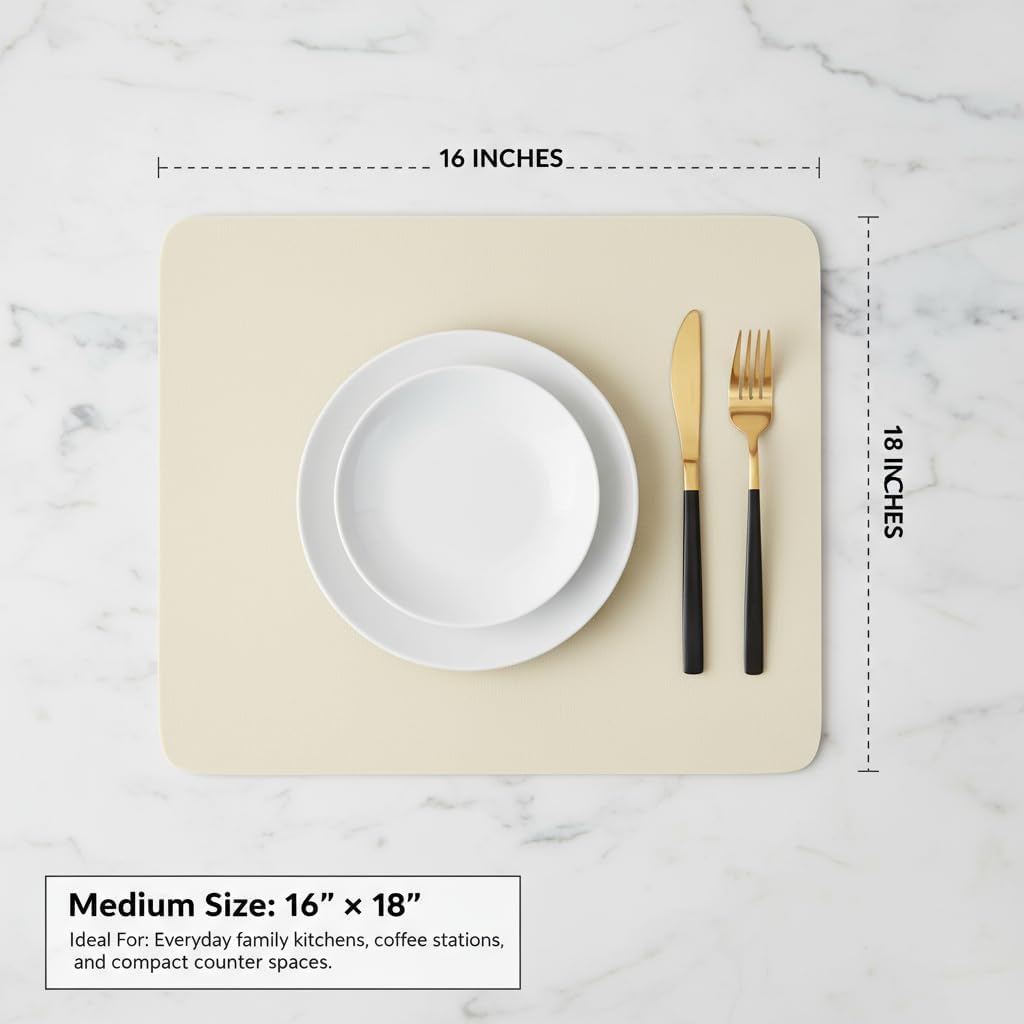 Dish Drying Mat Super Absorbent – 16" x 18" Coffee Mat for Countertops – Non-Slip Drying Mat for Kitchen Counter – Easy to Clean Water Absorbent Mat – Large Dish Drying Mats (Tapioca)