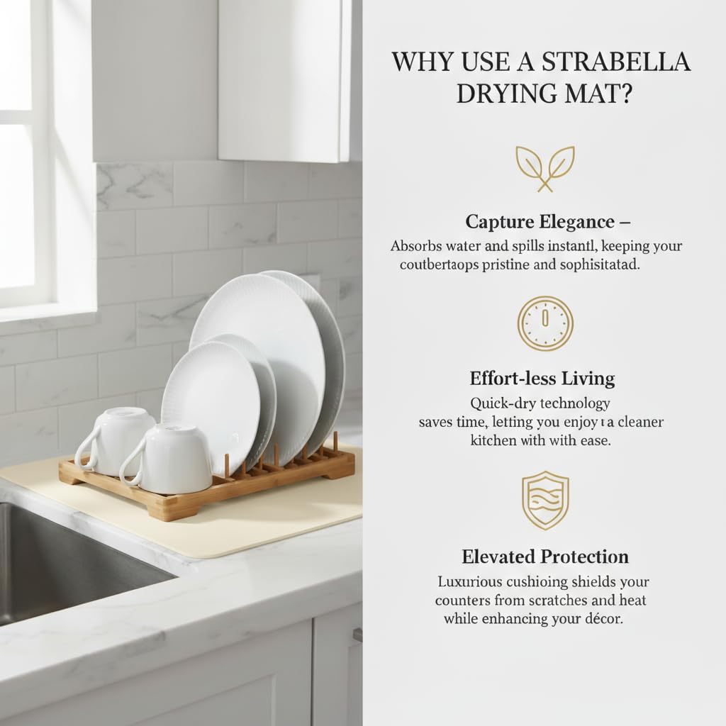 - EXCEPTIONAL ABSORBENCY: Experience the superior absorbent power of our Dish Drying Mat, designed to quickly soak up moisture from freshly washed dishes, ensuring a faster and more efficient drying process.