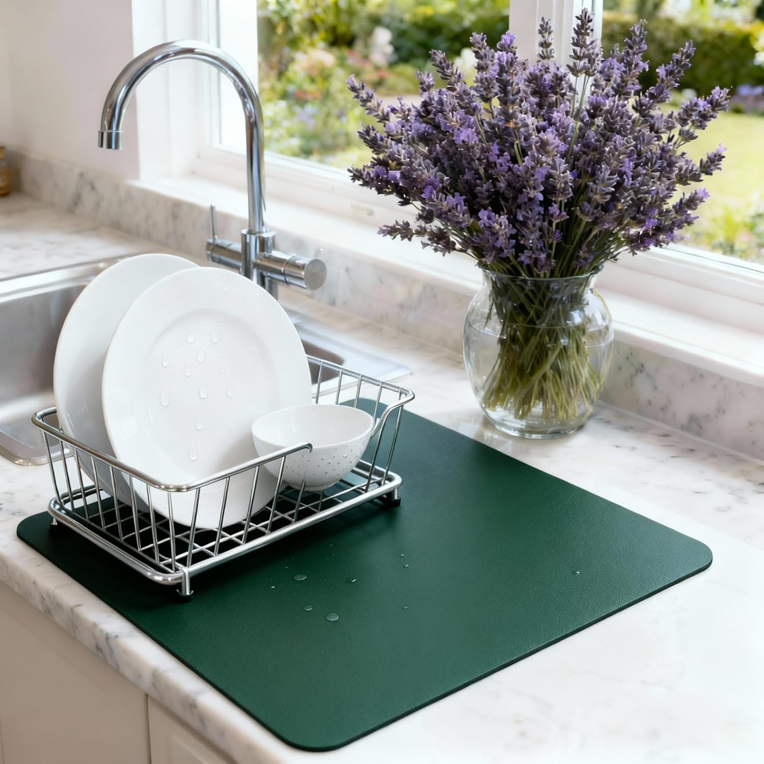 - EXCEPTIONAL ABSORBENCY: Experience the superior absorbent power of our Dish Drying Mat, designed to quickly soak up moisture from freshly washed dishes, ensuring a faster and more efficient drying process.
