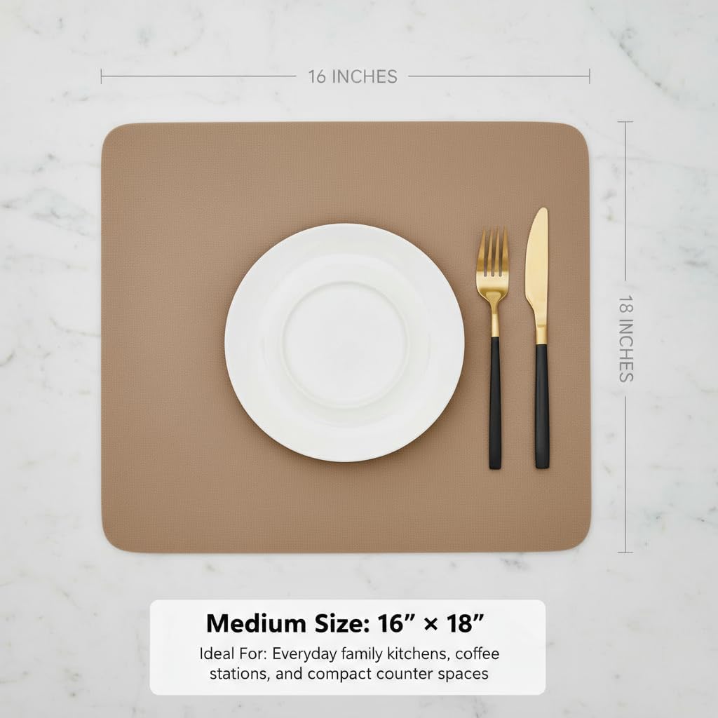 Dish Drying Mat Super Absorbent – 16" x 18" Coffee Mat for Countertops – Non-Slip Drying Mat for Kitchen Counter – Easy to Clean Water Absorbent Mat – Large Dish Drying Mats (Brown)