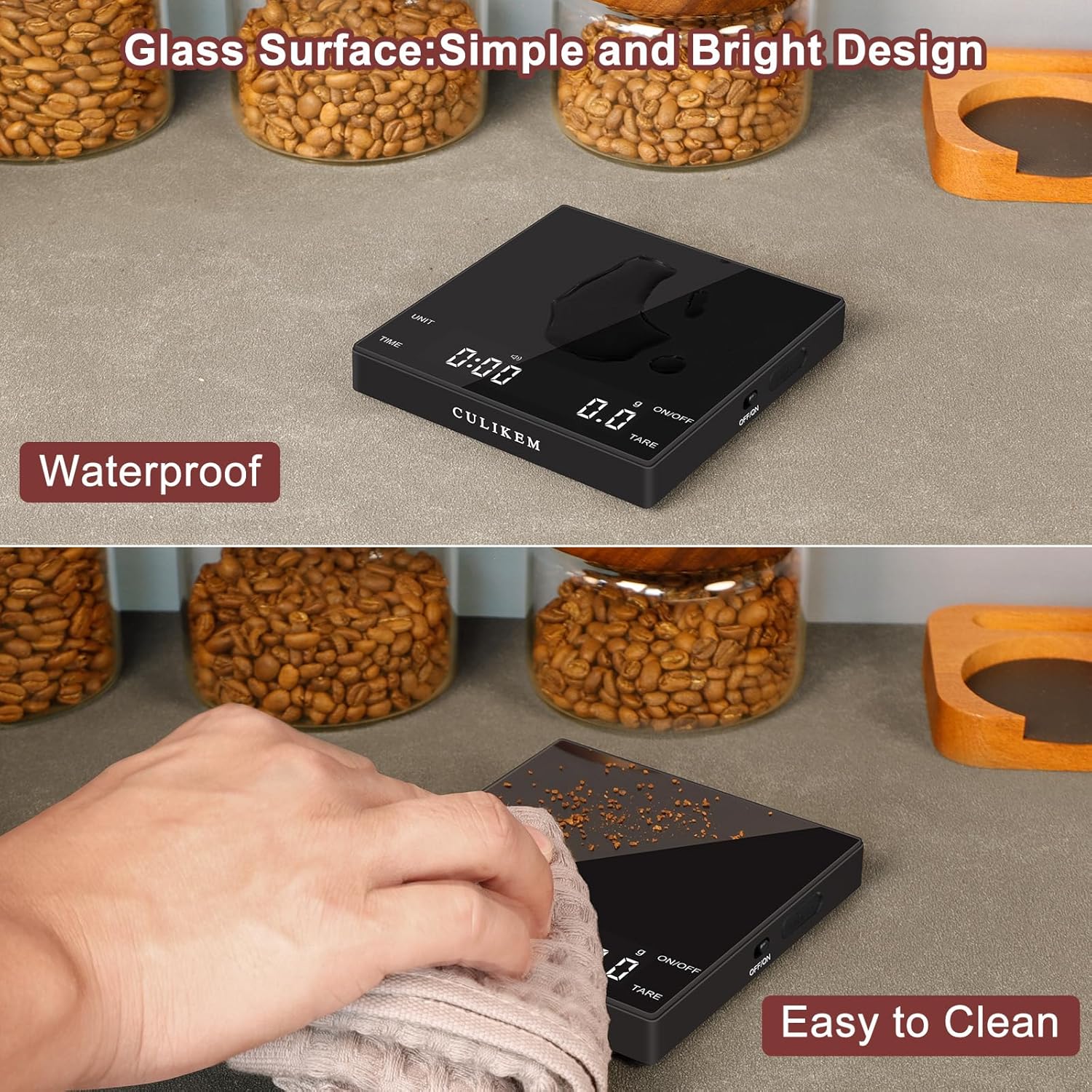 - Simple and Bright Design: This coffee scale features a black glass mirror design, suitable for making pour-over coffee, espresso and enjoying a bright, clean, and simple coffee life.