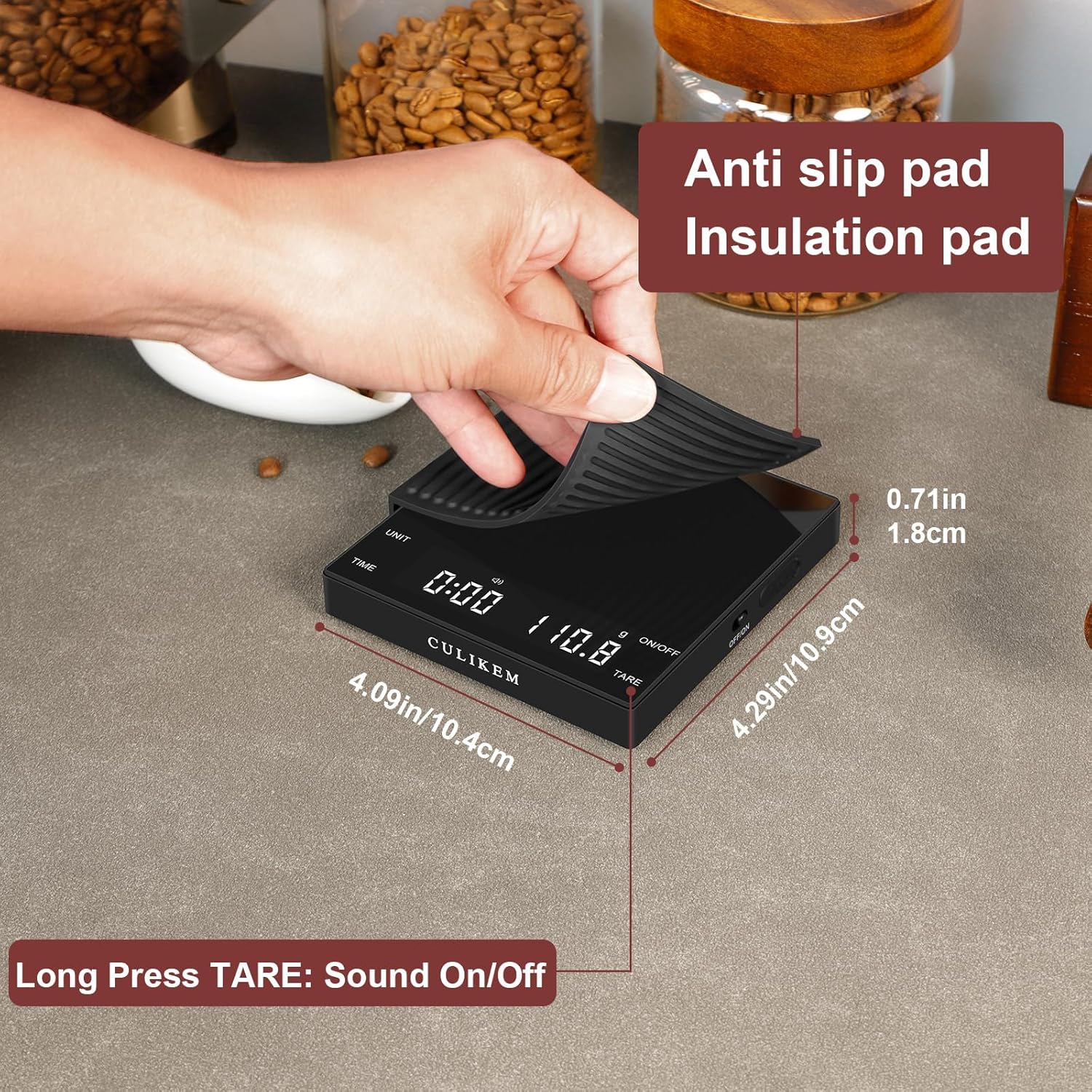 - Friendly Tip: If you plan to use this scale with an espresso machine, please check the dimensions of your machine's drip tray and the scale carefully. Ensure the scale fits securely on the tray before purchasing.